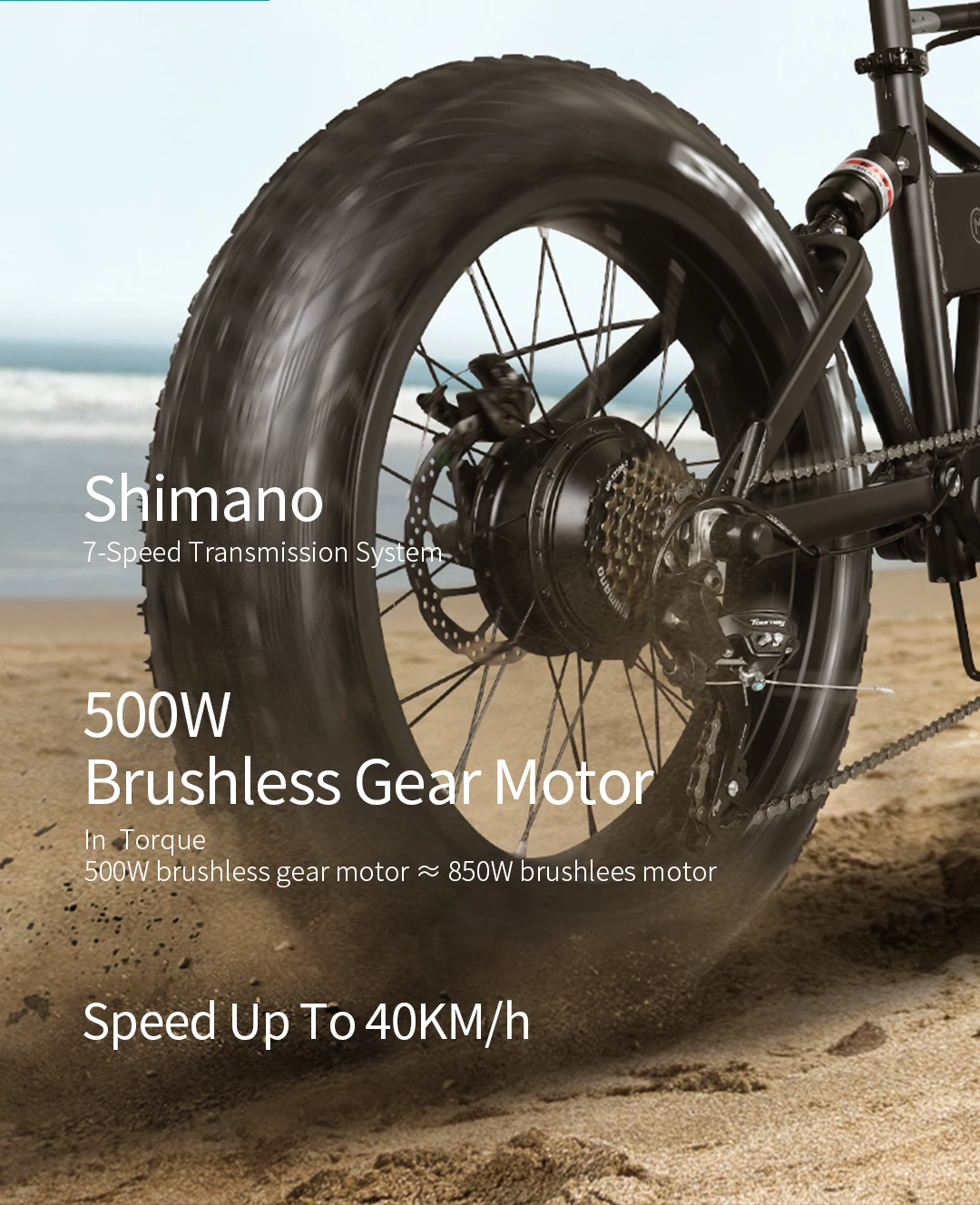 ● Колесный двигатель 500 Вт обеспечивает максимальную скорость 25 км/ч и максимальный градиент 30 градусов.