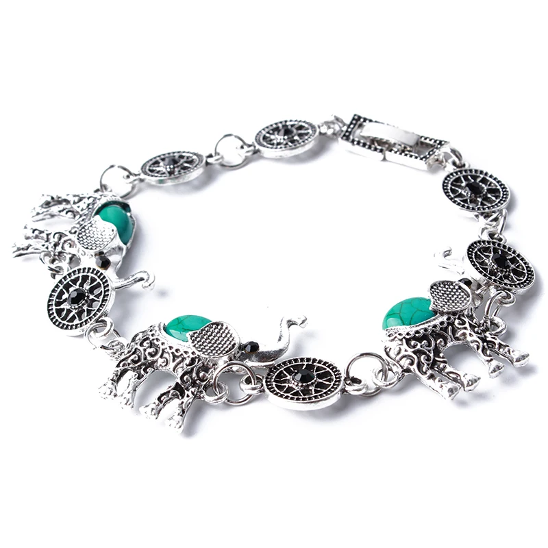 Модные Зеленые африканские Ювелирные наборы для женщин Винтажный серебряный слон кулон ожерелье серьги браслеты ювелирные изделия подарок