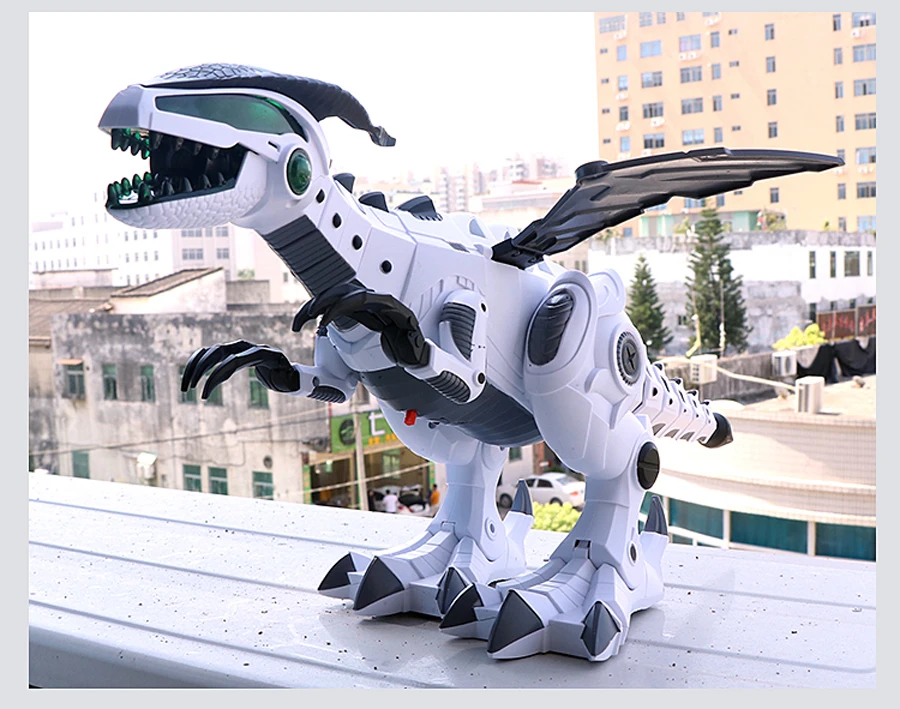 3. Механический внешний вид с ярким движением: общий корпус собран множеством небольших деталей разных размеров, как робот. Его шея и хвост могут встряхнуть, крылья могут качаться, рот может двигаться, а его сильные ноги с колесами, ходят с имитирующими динозаврами.