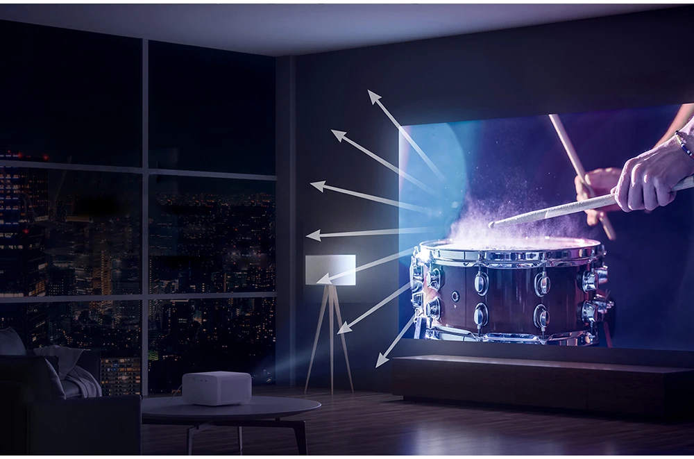 Mijia projector 2 использует принцип диффузного отражения изображения, который отличается от прямого светильник традиционного ЖК-телевизора. Проекционный светильник попадает в глаза человека через диффузное отражение, которое нелегко вызвать усталость глаз, и заботится о зрении детей и пожилых людей.