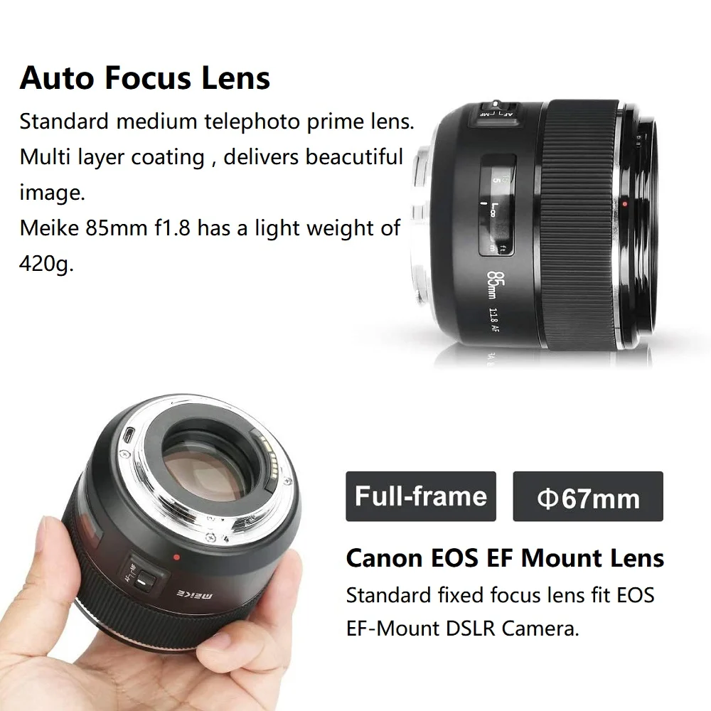 Meike 85 мм f1.8 для мобильных телефонов с автофокусом объектив для цифровой однообъективной зеркальной камеры Canon EOS EF крепление 6d 2000d 60d 80d 600d 70d 5diii 5div 650d 7d 5dii 5d 90d 550d цифровых зеркальных камер