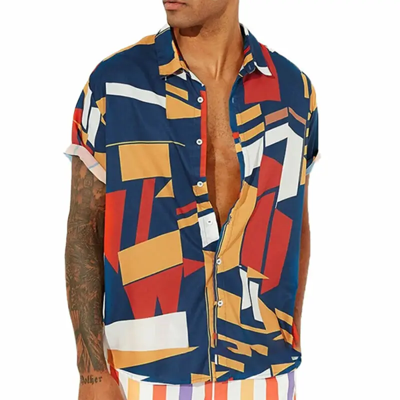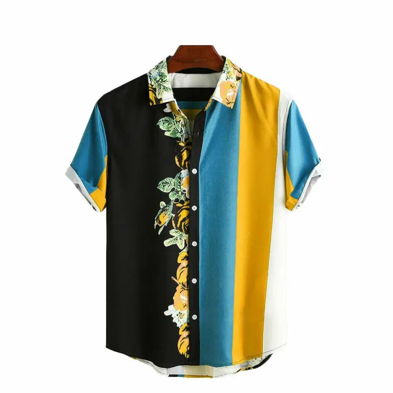 Мужские рубашки, цветные, с коротким рукавом, мужские рубашки на одной пуговице, повседневные, летние, праздничные, мужские топы размера плюс, мужская рубашка