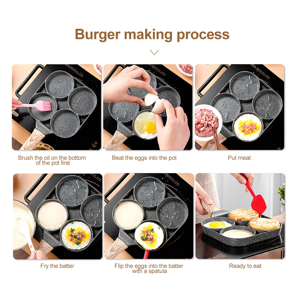 5. Многоцелевое назначение: сковорода может использоваться для приготовления омлет, бургеров и т. Д., а сковорода имеет 4 отделения, чтобы сделать приготовление пищи быстрым и легким.