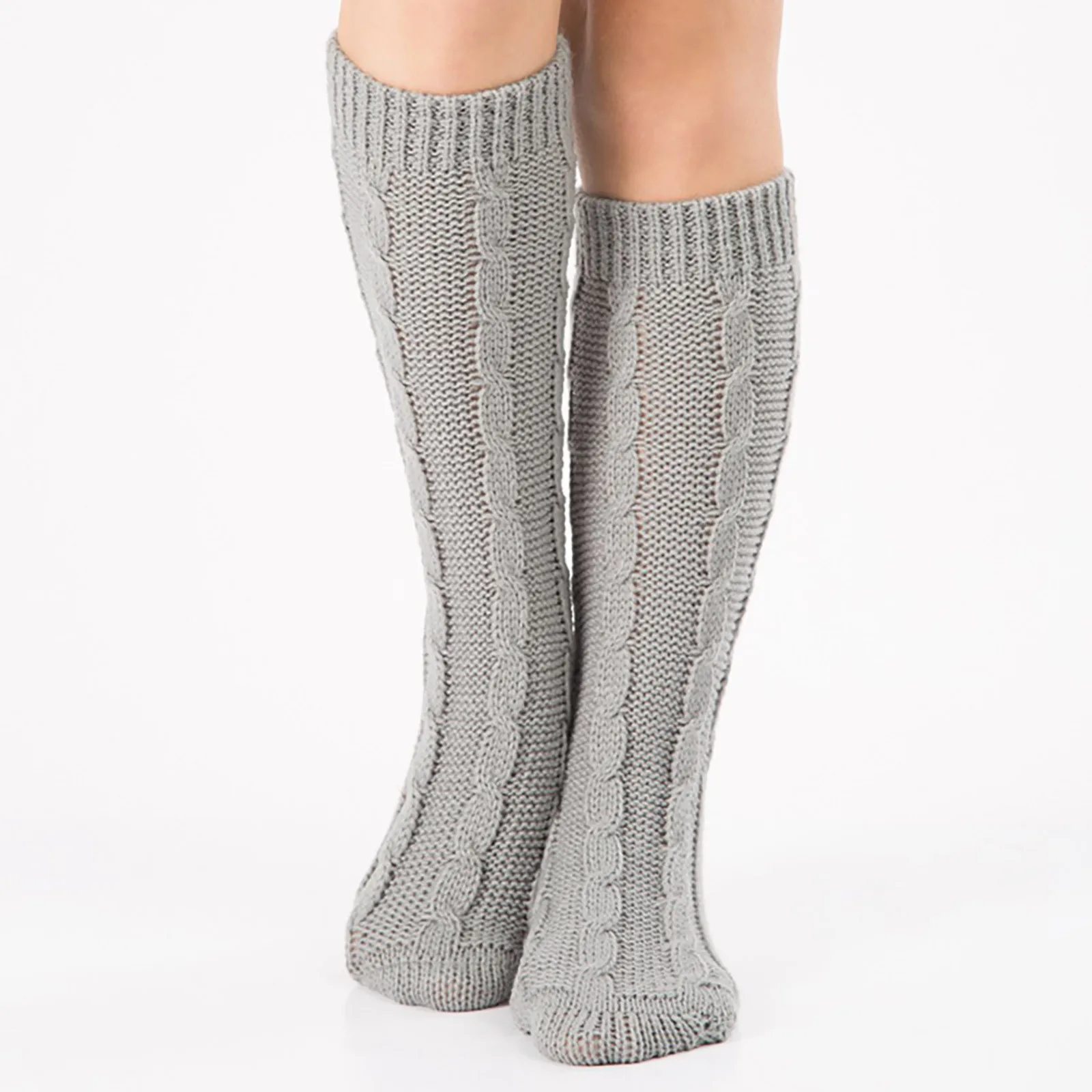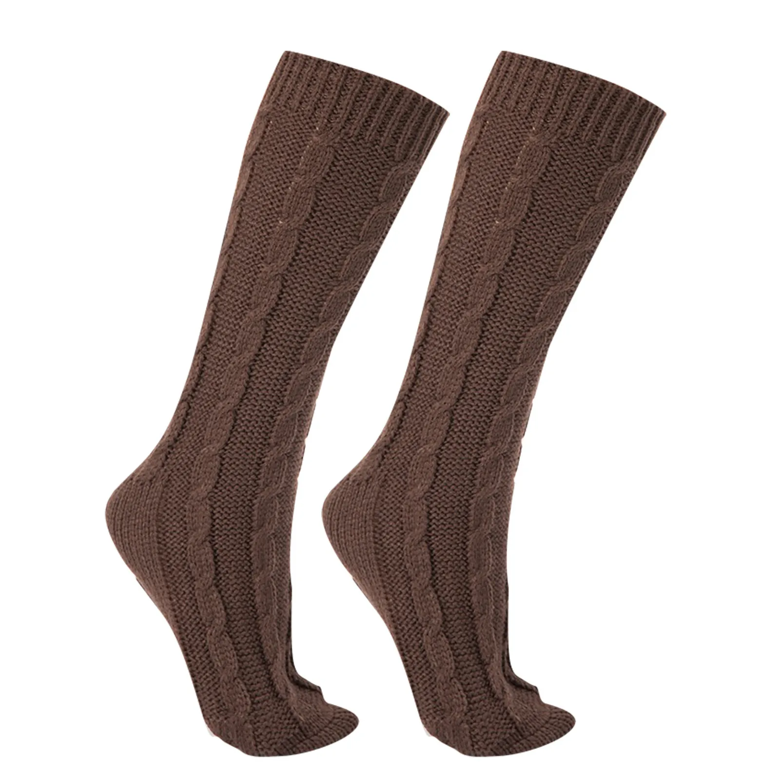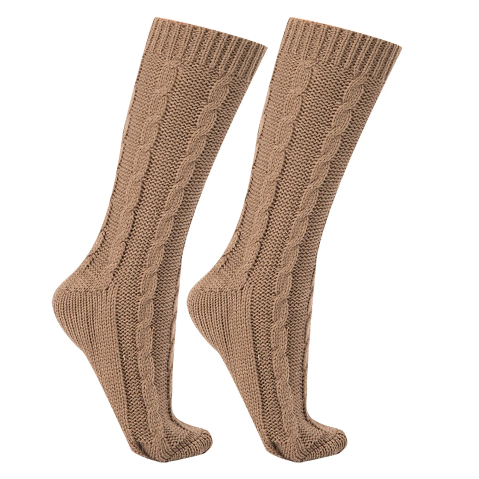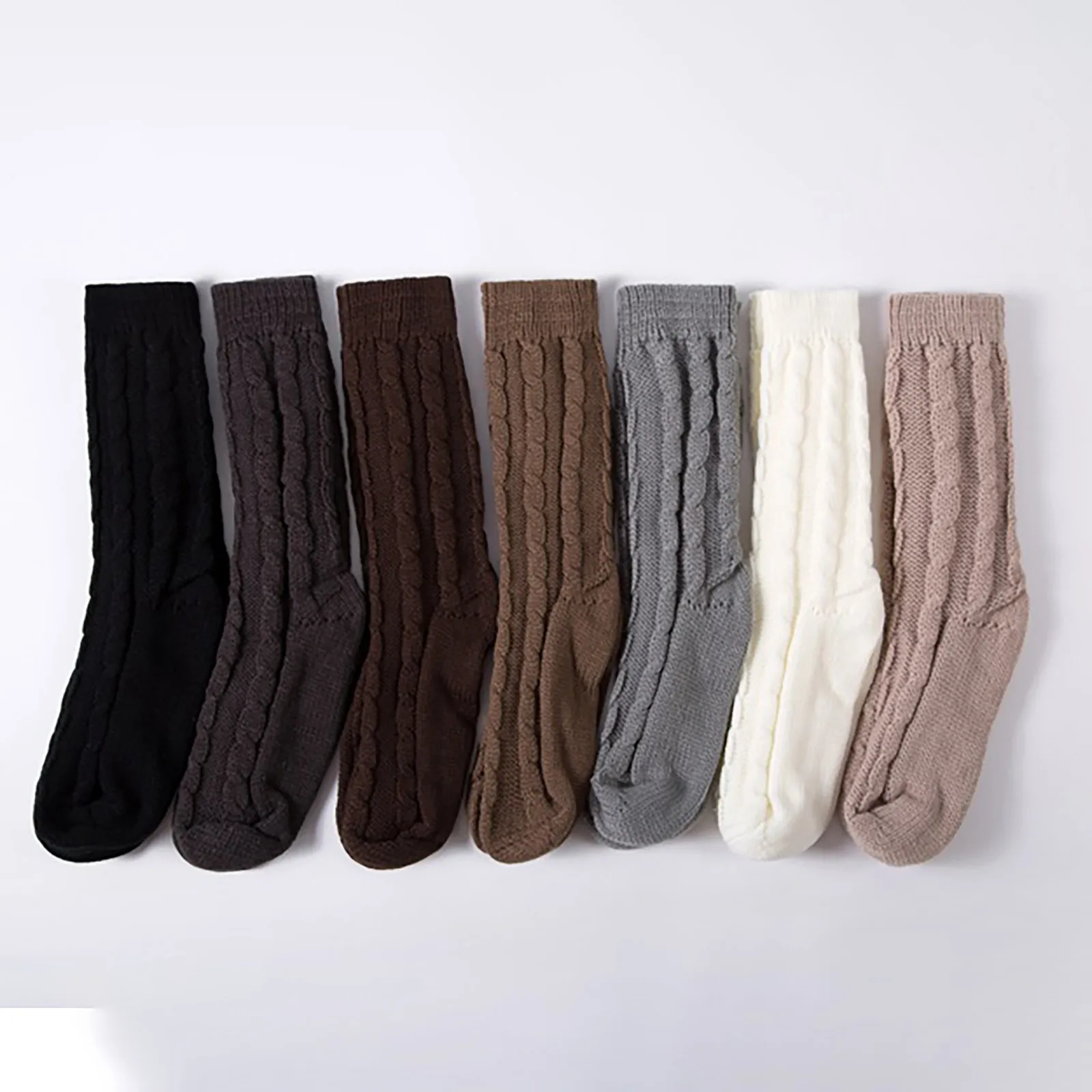 Женские зимние теплые рождественские кружевные шерстяные носки выше колена
