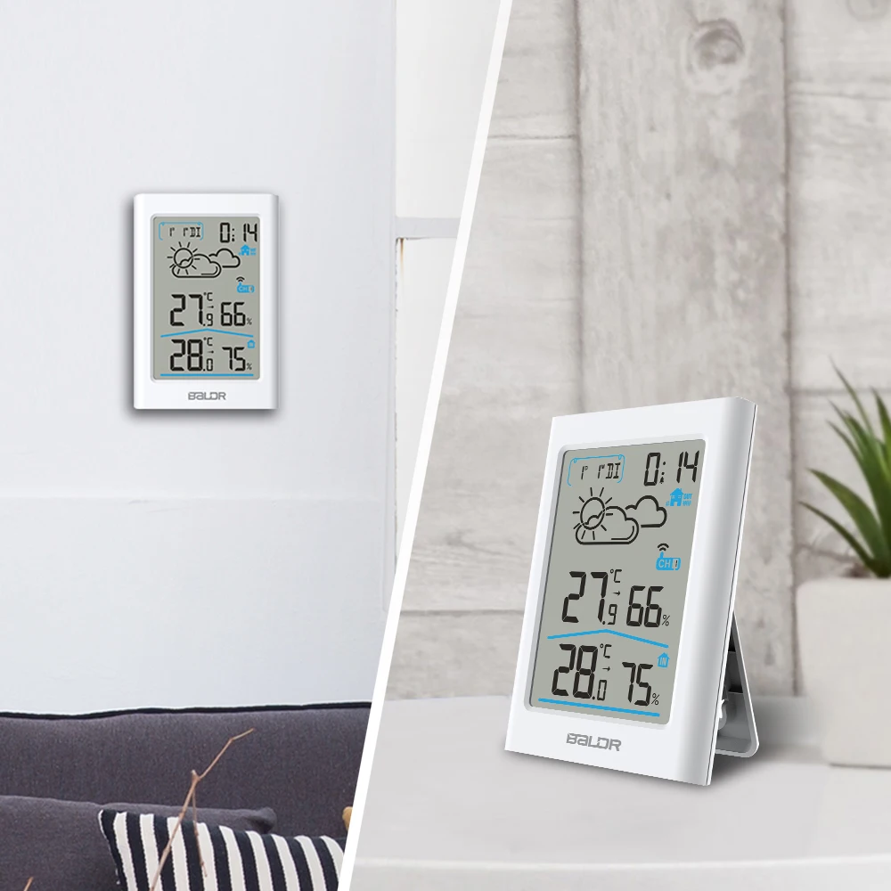 Передатчик метеостанции с подвесным отверстием на задней панели, который может быть легко установлен на стене. Кроме того, есть также конструкция кронштейна, которая может поддерживать его, чтобы стоять на плоской поверхности.