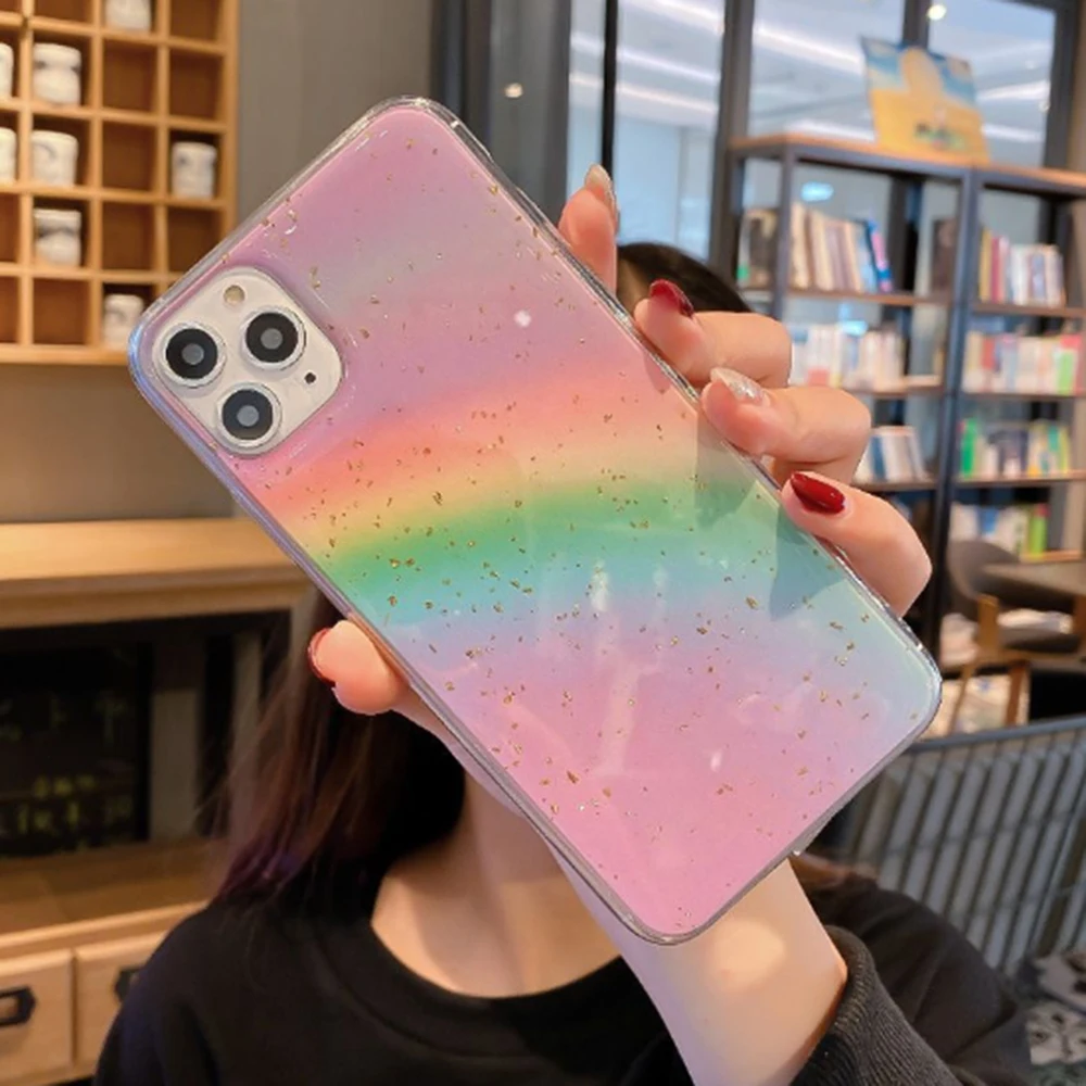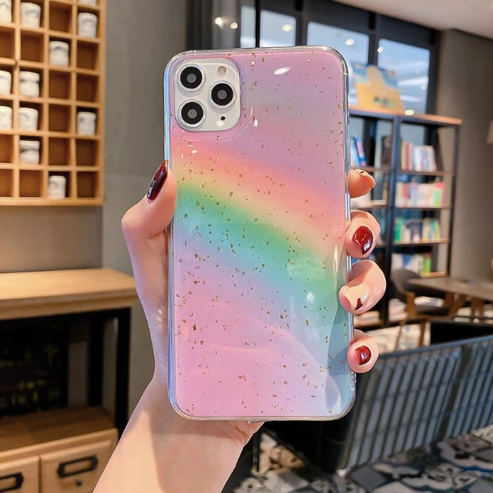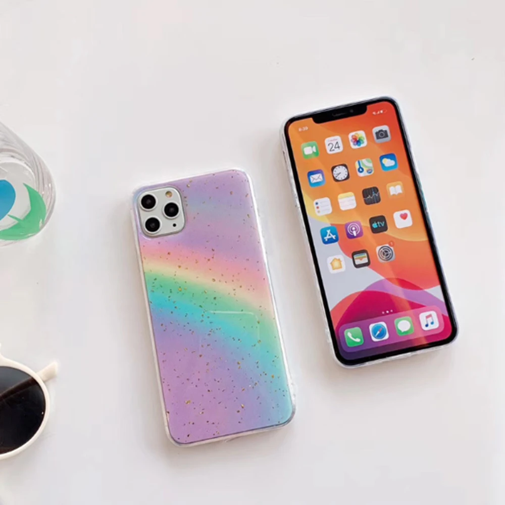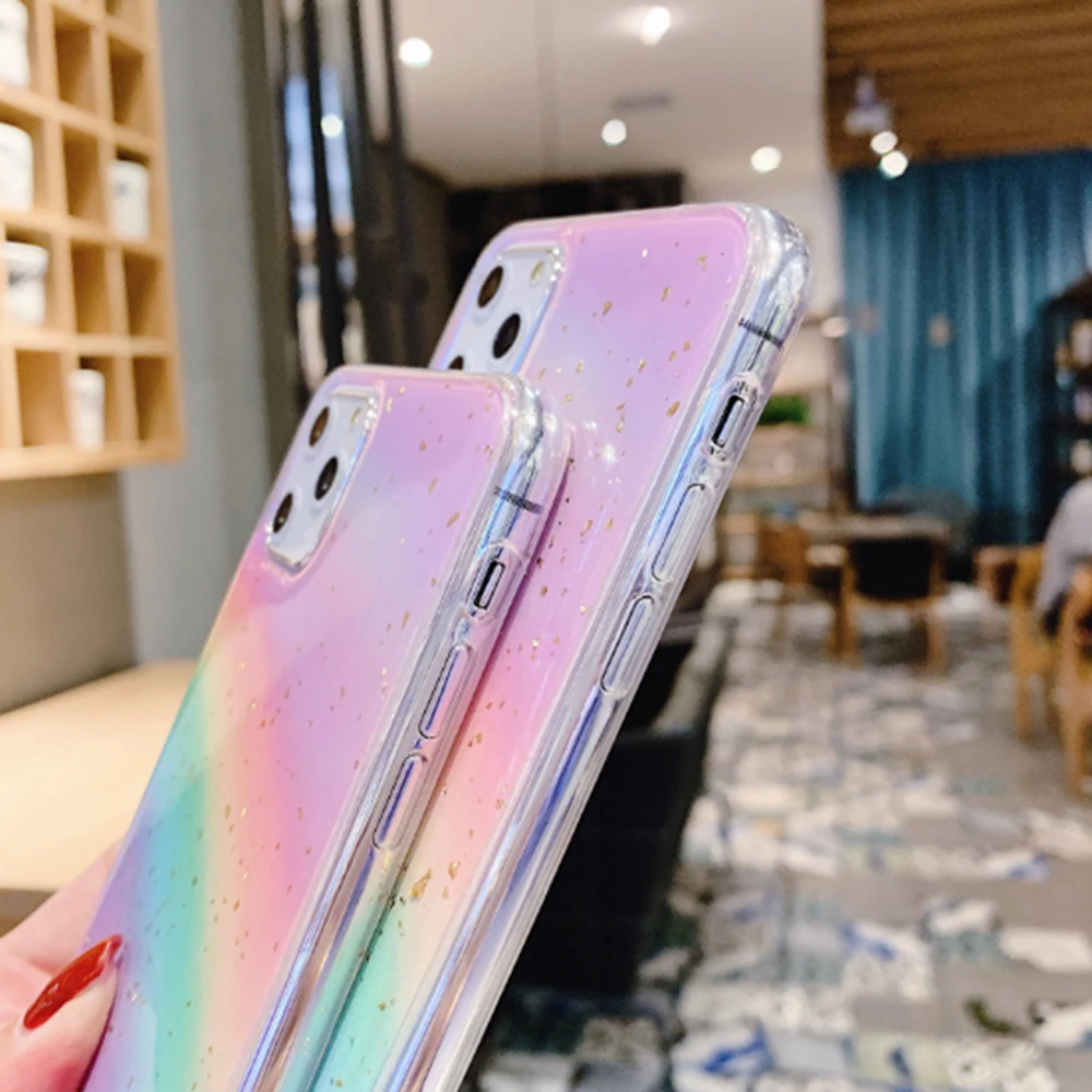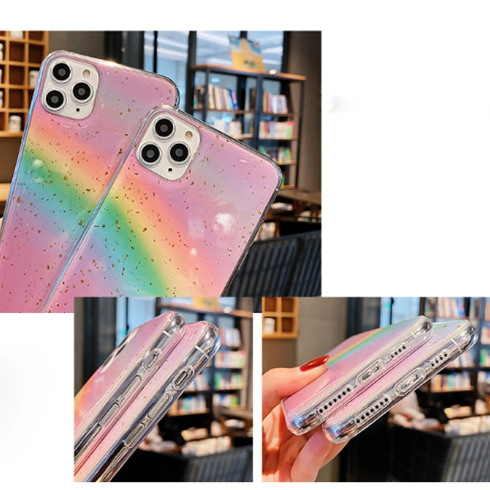 Мягкий силиконовый чехол для iphone 11 XR X XS Max для iphone 11 Pro Max 8 7 6 6splus SE с золотой фольгой и градиентом Сияющий Радужный блестящий чехол для телефона