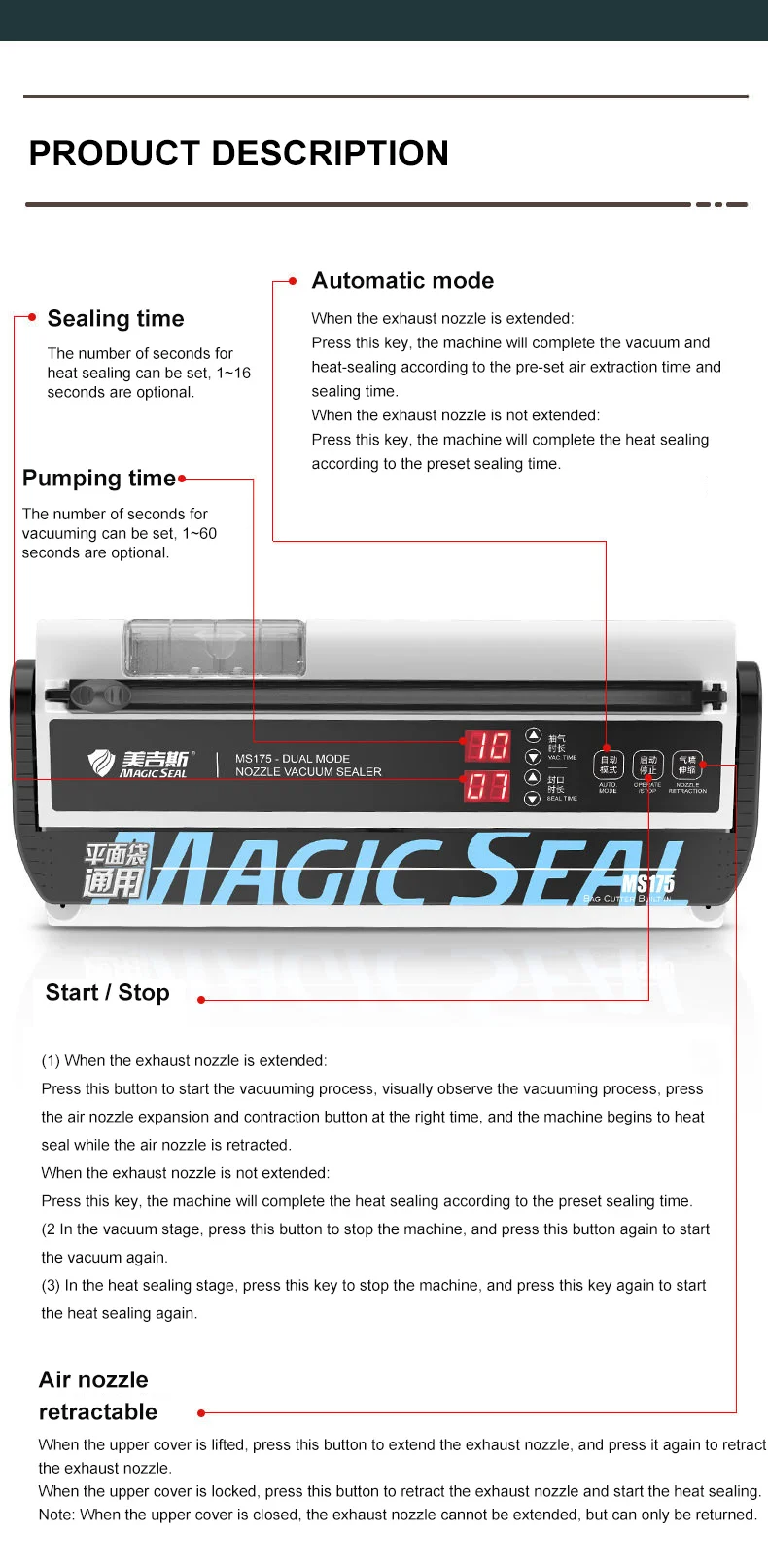 MS175 вакуумная запечатывающая машина с всасывающим соплом