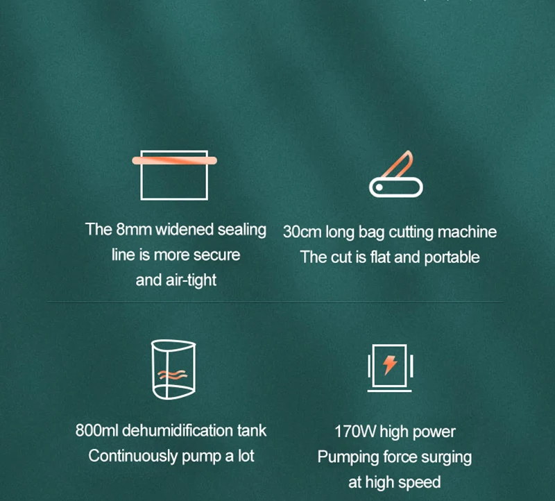 Через внешний разъем его можно подключить к вакуумным резервуарам, спрессованным пакетам и т. Д., что удобно для ежедневного хранения и хранения.