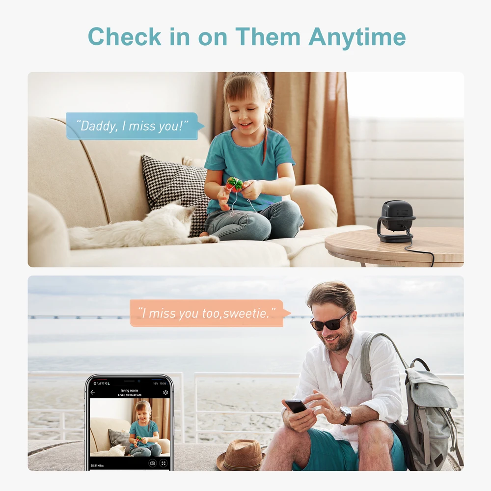 Motion, Обнаружение людей и мгновенные оповещения о сообщениях: когда HMAA1MQ smart indoor cam обнаруживает человеческое motion, он отправит уведомления в реальном времени на ваш смартфон. Чувствительность обнаружения этой домашней ip-камеры может регулироваться на высоком, среднем или низком уровне. Функция smart humaniod detection позволяет вам не пропустить ни единого момента, который имеет значение, а также сохранять спокойствие.