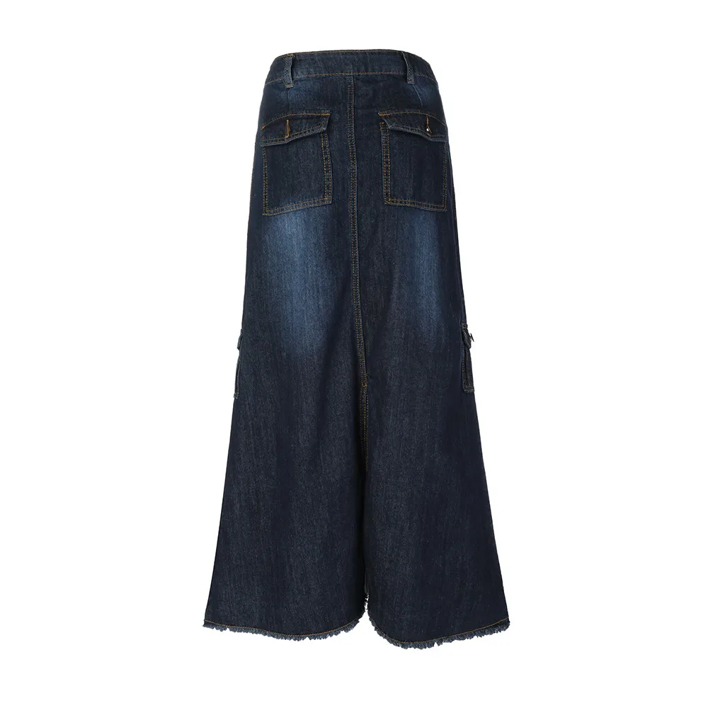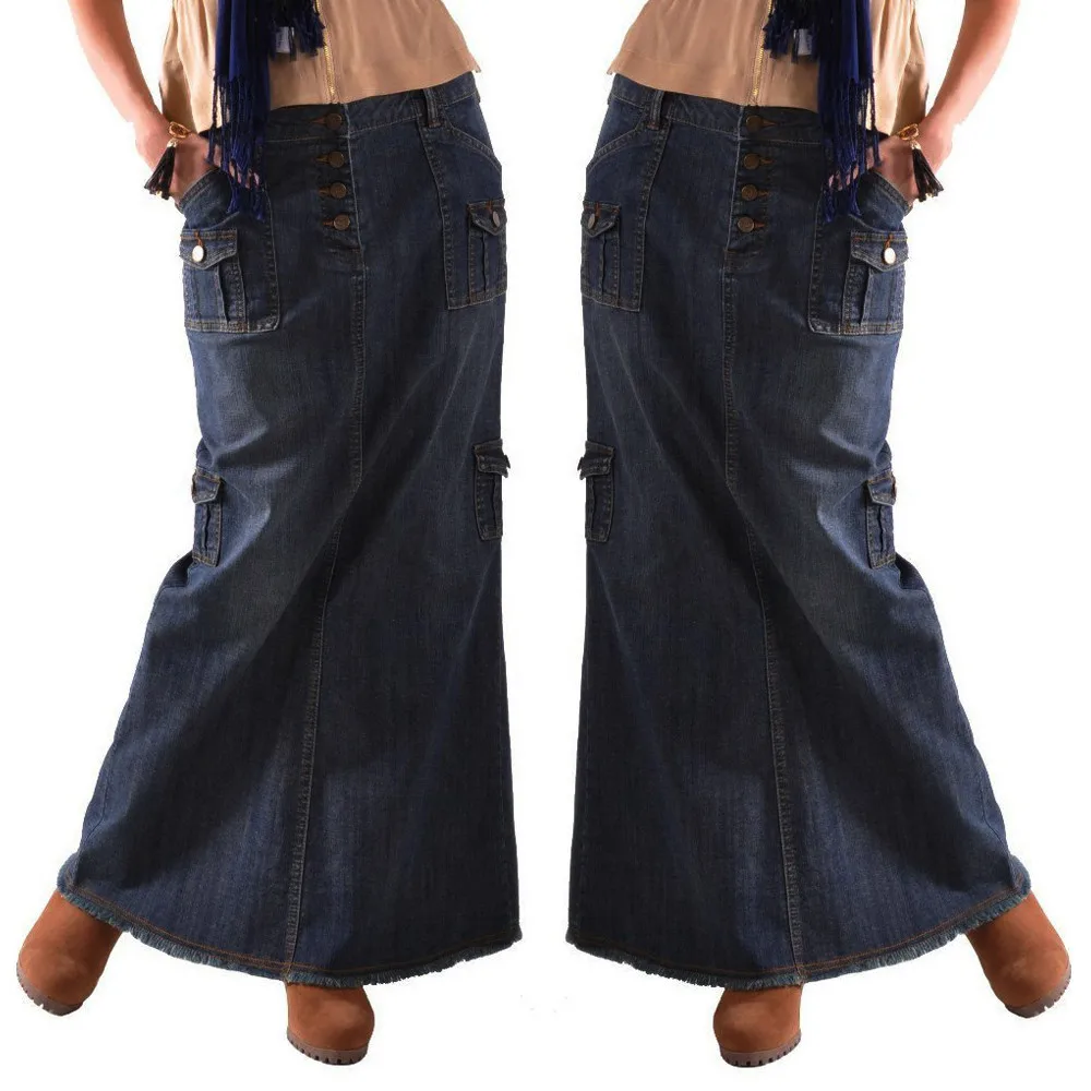 Женские модные длинные джинсовые Макси-юбки со средней талией и карманами на пуговицах спереди