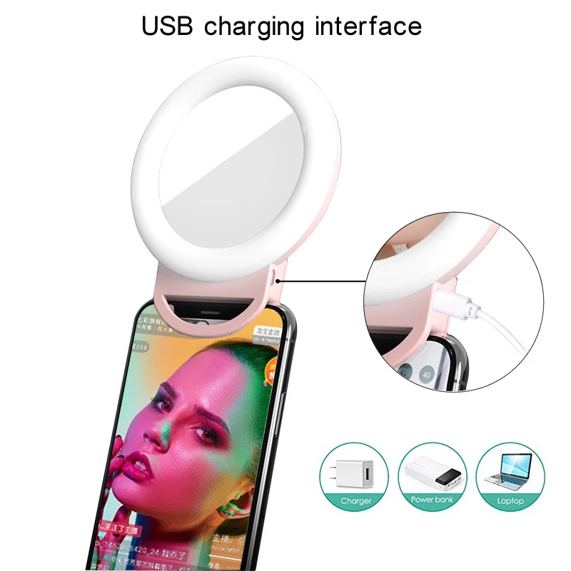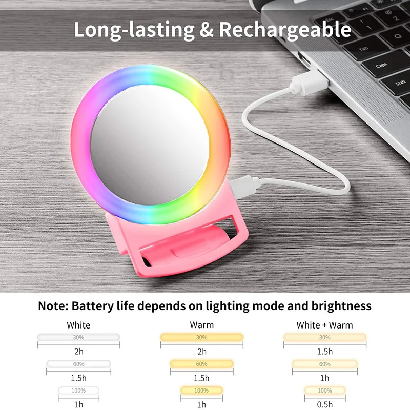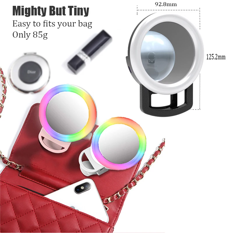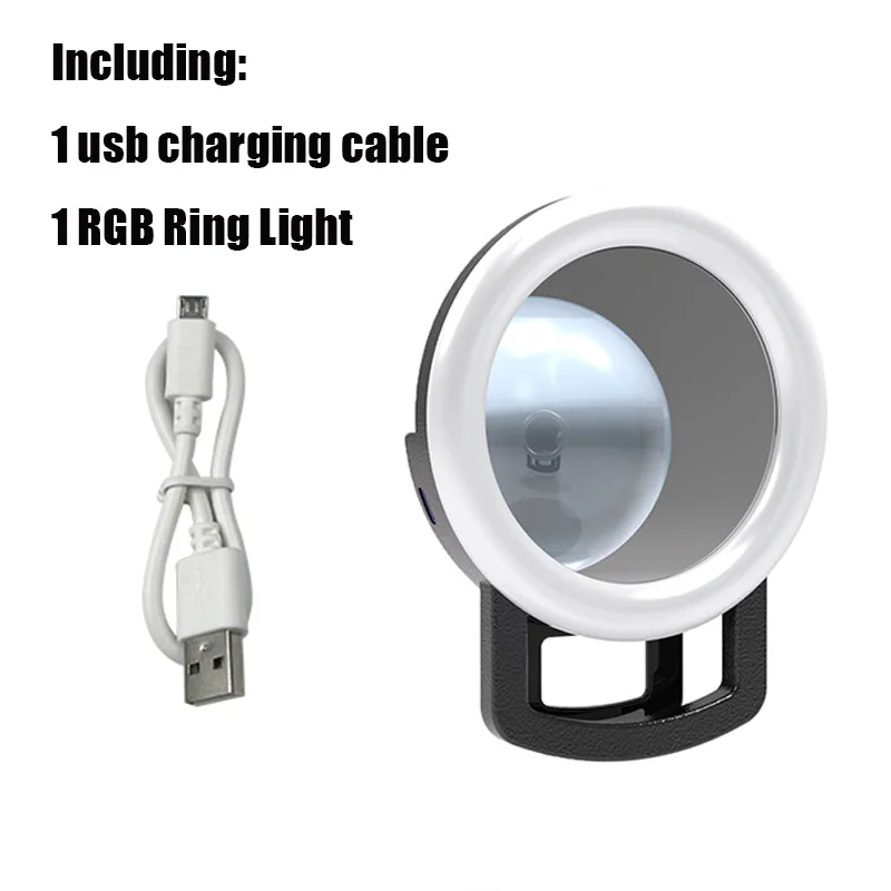 Bfollow RGB Selfie клип на кольцевой светильник, мини светодиодная круглая кольцевая лампа с зеркалом для макияжа для телефона, камеры, планшета, ноутбука, видео записи, живой поток, светильник для фотосъемки