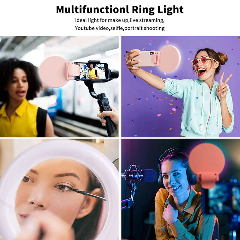 Многофункциональный светильник для селфи: Светодиодный кольцевой светильник подходит для трансляции макияжа, фото светильник, кольцевой светильник для ноутбука, Запись видео на Youtube, Facebook, Instagram, фотография, онлайн-обучение, видеоконференции, вечерние и концертные. Он также может сотрудничать с задней камерой, чтобы делать фотографии домашних животных, небольших аксессуаров, светильник для пищевых добавок и светильник для вспышки в чрезвычайной ситуации.