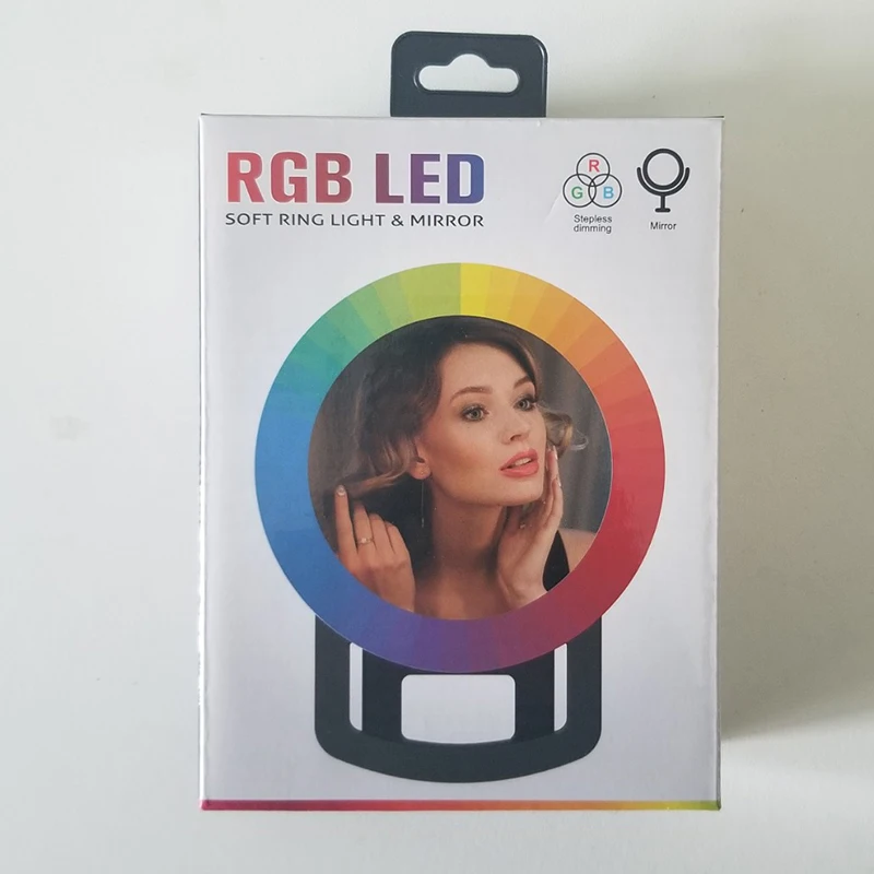 Кольцевой светильник для селфи RGB обеспечивает разные цвета, включая 3 нормальных цвета (холодный светильник, теплый, естественный светильник) и 10 цветов RGB, таких как белый, фиолетовый, синий, желтый, красный, зеленый, светильник синий, 4 динамических режима в комплекте. Разнообразный и яркий светильник для удовлетворения ваших потребностей при любых обстоятельствах.