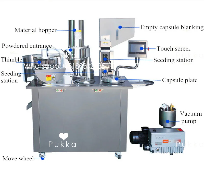 Полуавтоматическая машина для наполнения капсул принимает новейшую систему управления программированием, управление сенсорной панелью, плавное регулирование скорости преобразования частоты, пневматическое комбинированное управление и электронное автоматическое счетное устройство, которое может автоматически завершить позиционирование, разделение, наполнение и блокировка капсул.