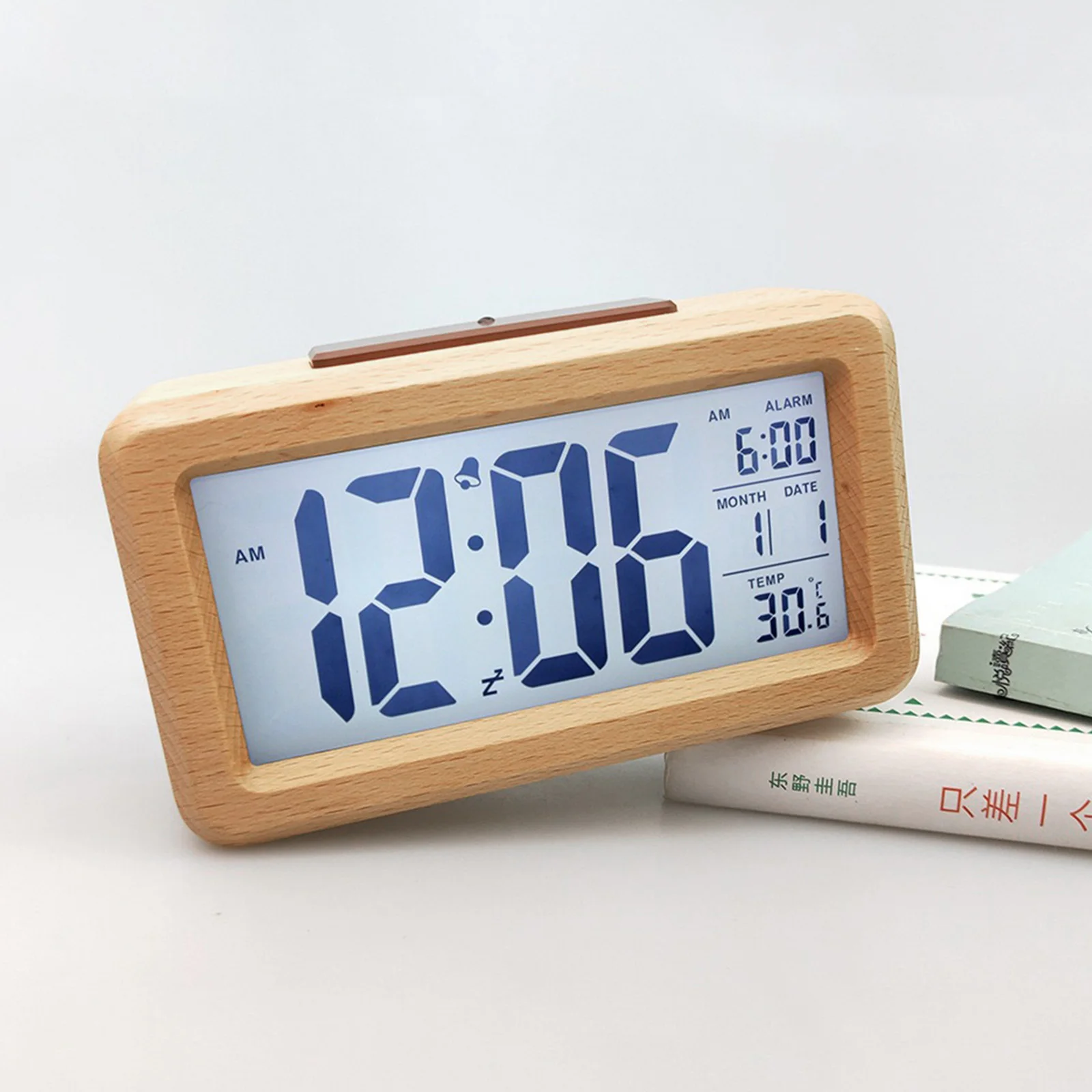 3. Цифровой дисплей, удобно смотреть время. С деревянным материалом, простой современный стиль.