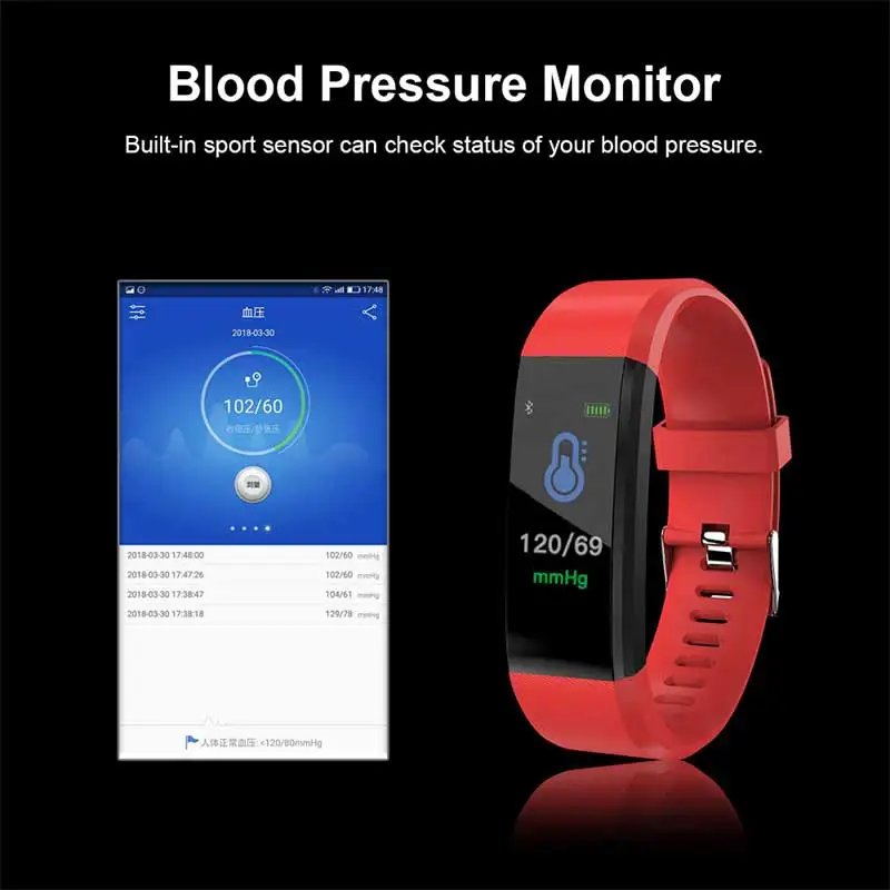 115 Plus Bluetooth 4,0 Смарт-часы Браслет фитнес-трекер для измерения сердечного ритма, спортивные Смарт-часы Смарт-браслет