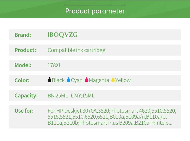 Совместимый чернильный картридж IIBOQVZG 178XL 178 для HP178 xl Photosmart 5520 5524 6510 6520 7510 B109 B110 B209 B210 C309 C310 C410