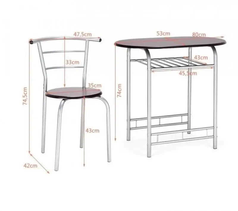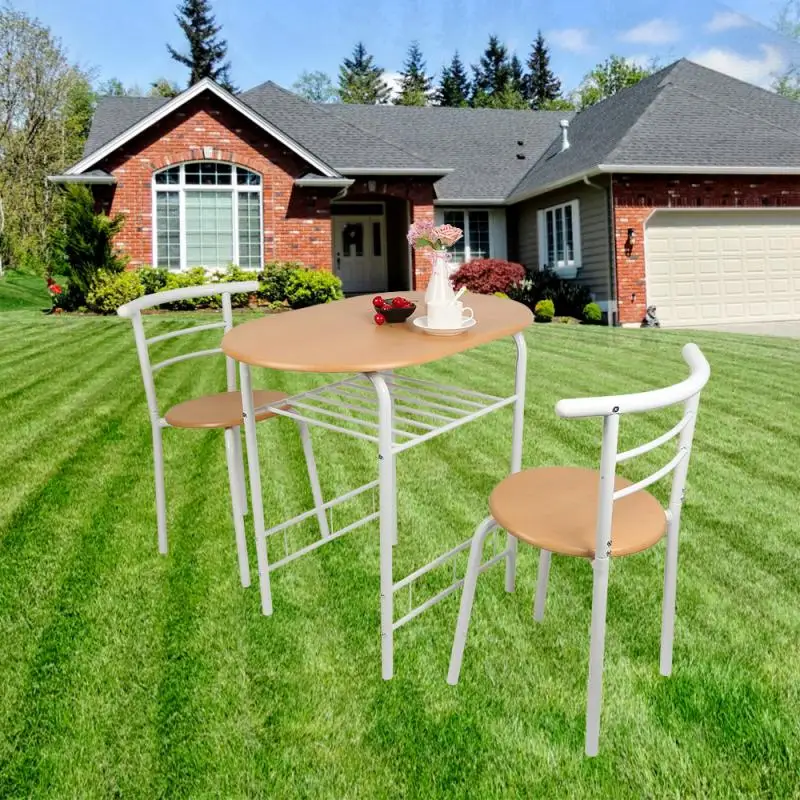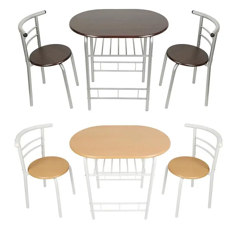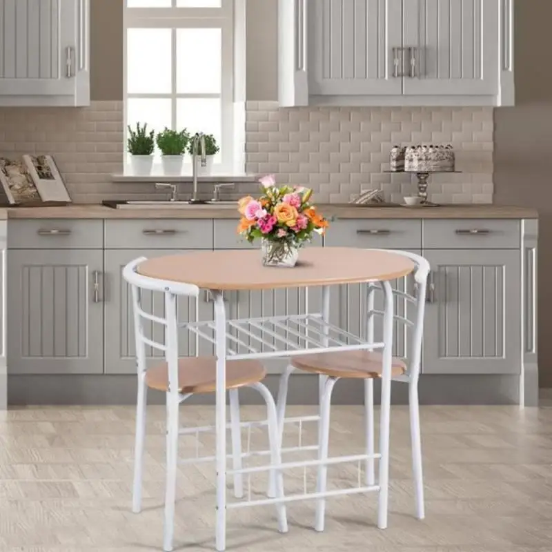 Трехкомпонентный обеденный стол и комбинация стульев хорошо разработаны для компактного пространства, таких как мини-кухня, балкон, отдельная квартира и т. д.; обеденный стол и стул изготовлены из высококачественного МДФ материала панели стола, сиденья стула и твердой железной пластины на всей раме. Просторный стол и дополнительная открытая полка могут удовлетворить ваши большие потребности в хранении и дисплее, а его современный и элегантный дизайн позволит вам очень доволен, будьте уверены в использовании