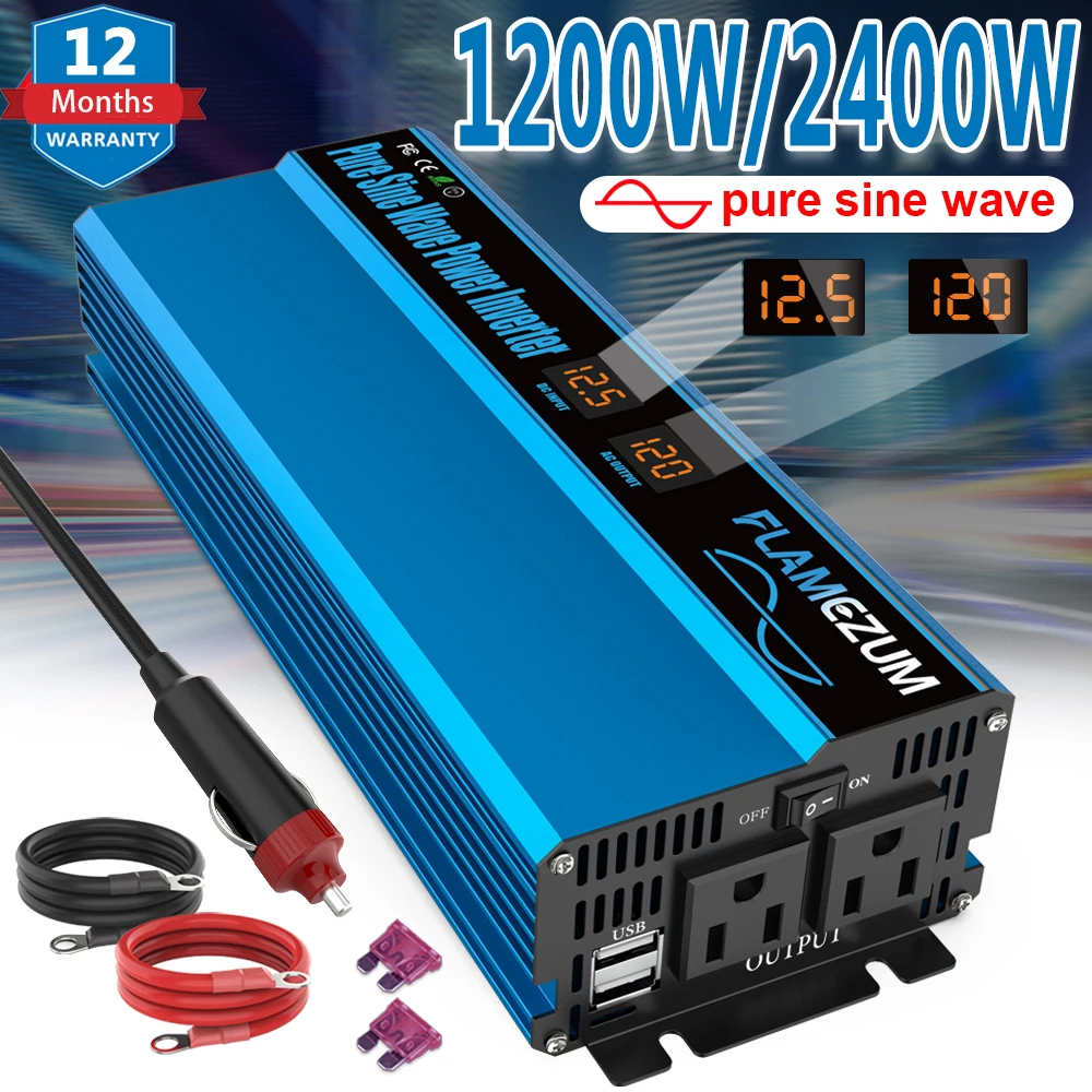 Инвертор 12v 110v 2400w 1200w Чистая синусоида Инвертор DC12V к AC 120V/220V/230V/240V LCD дисплей и дистанционное управление и порт USB