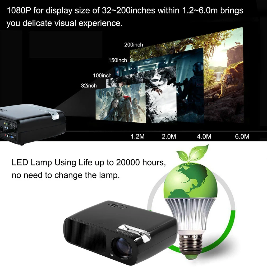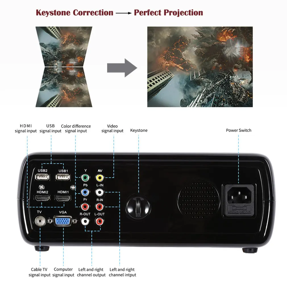 Особенности: 1. Разрешение 800x480, 2600 люменов, дают вам фантастический домашний кинотеатр. 2. Светодиодный светильник-источник. Длительный срок службы до 2000 часов. 3. Мультимедийная функция, с несколькими интерфейсами: 2 * HDMI,2 * USB,ATV,AV,VGA. Проектор может быть подключен к телевизору, телевизору, ноутбуку, ПК, usb-накопителю, iPad, смартфону и т. д. 4. Ручная фокусировка регулировки, изображение от 1,2 до 6 месяцев, которые помогут вам наслаждаться просмотром фильмов, игры в любое время. 5. 3 вида проекционных методов, передний/задний/потолочный. Изображения можно изменить на 360 градусов. Их можно положить на стол или повесить на потолок. 6. Поддержка коррекции keystone, простое изменение в 16:9 и 4:3 соотношении сторон; Низкое энергопотребление, эхо-ориентированное, Поддержка питания транспортного средства ed, простота в использовании. 7. Поддержка красного и синего 3D эффекта от 3D красных и синих очков и источников пленки. 8. Для подключения проектора к планшету или смартфону Используйте беспроводной адаптер HDMI. (Пожалуйста, убедитесь, что ваш телефон поддерживает выход ссылки высокой четкости мобильного телефона.) Описание: Для подключения проектора к планшету или смартфону Используйте беспроводной адаптер HDMI. (Пожалуйста, убедитесь, что ваш телефон поддерживает выход ссылки высокой четкости мобильного телефона.) Характеристики: Модель: BL-20 Штепсельная Вилка: US(Amercian), EU(Europenan) , UK (UK), JP(Japanese) Цвет: белый, черный Режим подключения: WIFI Проекционная технология: 5,0 дюймов TFT ЖК-дисплей панель. Стандартный разрешение (dpi): 800*480, поддержка 1080P Яркость: 2600 люмен Тип лампы: светодиодный светильник Срок службы лампы: 20000 часов Проекционный экран Размер/Расстояние: 32-200 дюйма, от 1,2 до 6 месяцев Объектив проекции: объектив ручной фокусировки Контраст (стандарт): 2000:1 Соотношение сторон: 4:3 / 16:9 Чехол с откидной крышкой на 360 градусов Метод проекции: передний/задний/потолочный Шум (дБ): менее 25 дБ Язык меню: чешский, английский, словацкий, датский, немецкий, испанский, французский, хорватский, итальянский, венгерский, голландский, норвежский, польский, португальский, румынский, словенский, сербский, финский, шведский, болгарский, греческий, русский, китайский Потребляемая мощность (Вт): 110 Вт Быстрая загрузка 3 секунды Вход: USB * 2/HDMI * 2/TV/AV/YPBPR/VGA/аудио вход (RCA терминал x 2, левый и правый звуковой канал)/Аудиовыход/Встроенные динамики (2 Вт * 2) Мощность: 110-240 В (± 10%), 50/60 Гц Фильм: MPG, MPE, VOB, DAT, BUK,TS0, TRP, TS , TP , M2T,RM0, RMV, RM , RMVB,AVI, MP4, DIV, MOV, MKV, WSF, ASF. FLV, WMV, ASM, 3GP, 3G2,WMV Фото: BMP,JPG, JPE, PNG ,TIF, GIF Музыка: MP3, WMA,M4A, AAC, WAV TXT:TXT Вес нетто: 2422 г Вес посылка: 2782 г Размер Pruduct (Д x Ш x В): 260x220x93 мм Размер посылка (Д x Ш x В): 320x185x265 мм Посылка включает в себя: 1 x светодиодный проектор 1 x Руководство пользователя 1 гарантийная карта 2 x Сумка аксессуаров 1 x av-кабель 1 х адаптер питания 1 х пульт дистанционного управления Примечания: 1. Из-за разницы между различными мониторами изображение может не отражать фактический цвет изделия. Мы гарантируем, что модель реального изделия не отличается от представленной на фото. 2. В связи с использованием разных методов измерения возможна погрешность в 1-3 см. Спасибо!