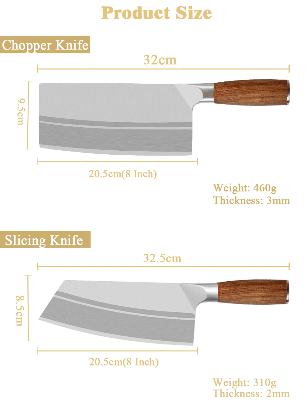 【Multi-Functional Vegetable Cleaver Knife】8 Inch Full Tang Cleaver Knife Is Extremely Sharp, Which Is Made Of High-Quality Stainless Steel, So That It Is Suitable For Cutting Meat, Fish, Vegetable, Fruits Or Any Other Your Favourite Foods .