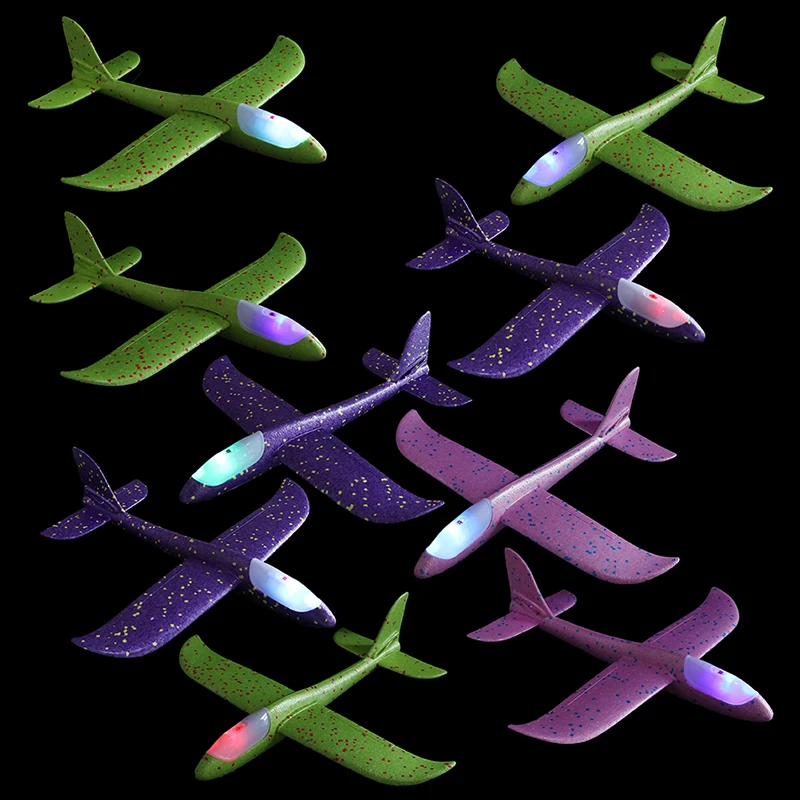 48cm Aircraft Toys Kids LED Light-up DIY Hand Throw Flying Glider Plane Glow In The Dark Toys for Children Foam Airplane Model Gift