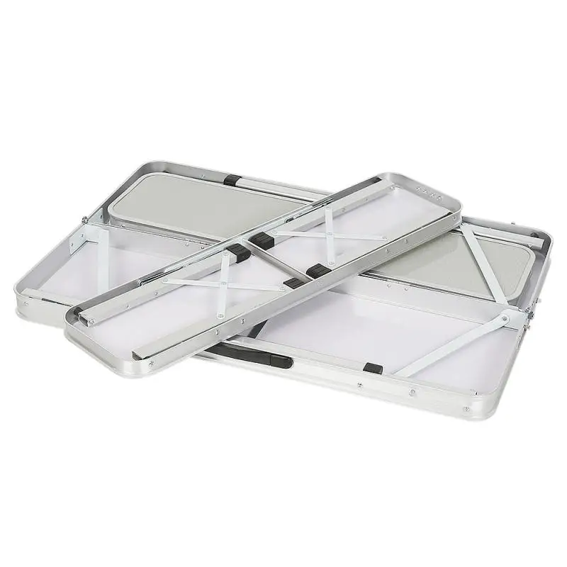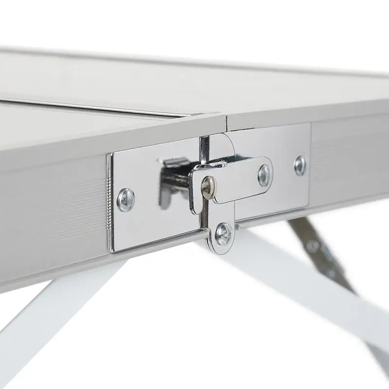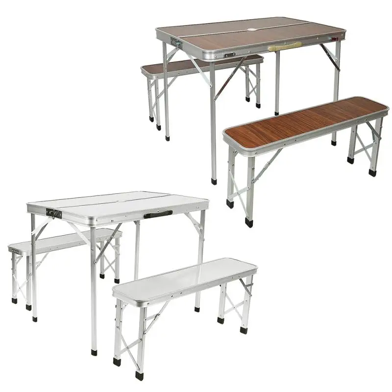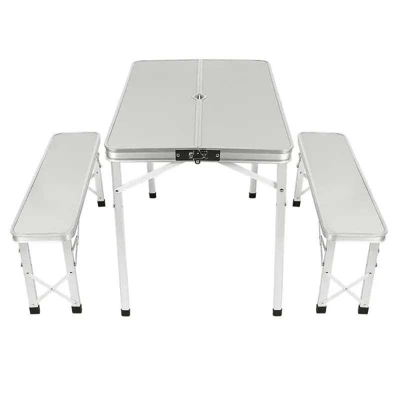 1 Алюминиевый Складной комплект стол, 2 скамейки общий размер упаковки: 93,5*12*34,5 см Вес брутто: 9,5 кг Материал: высококачественный алюминиевый сплав Стиль: современный и простой