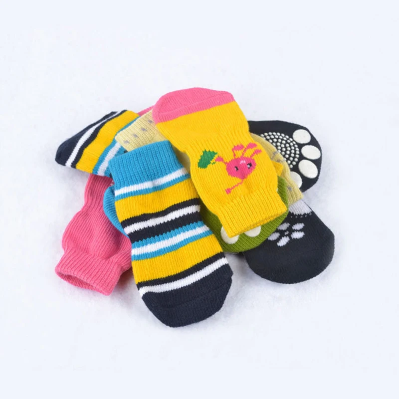 4 шт.; Теплая для щенков собак обувь; Мягкие носки для домашних животных; Милые Нескользящие Носки с рисунком