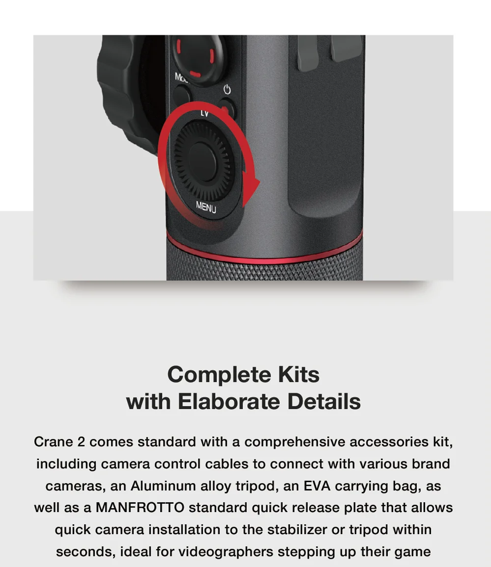 Пожалуйста, обратите внимание: этот кран 2-Lite версия не включает в себя servo приборы непрерывного изменения фокусировки камеры, спасибо!