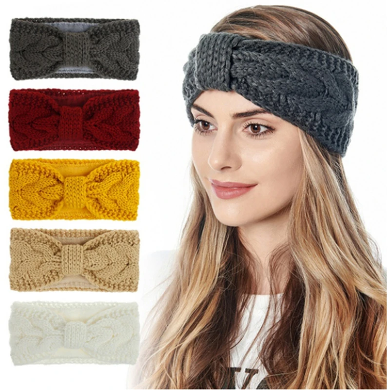 Модные зимние шерстяные вязаные теплые женские повязки на голову с пуговицами, женские тюрбан, спортивные головные уборы, ленты для волос плюс бархат