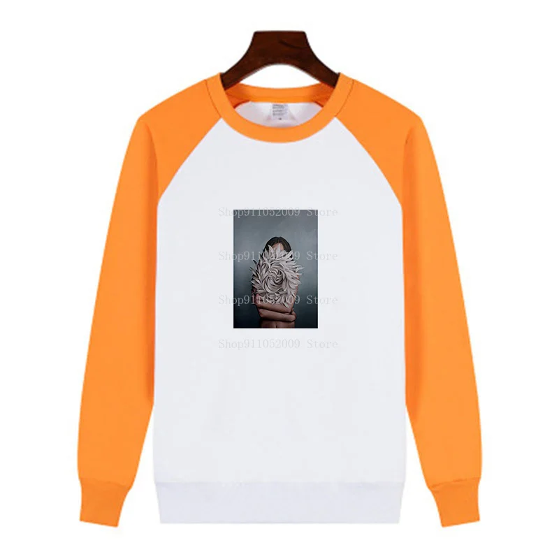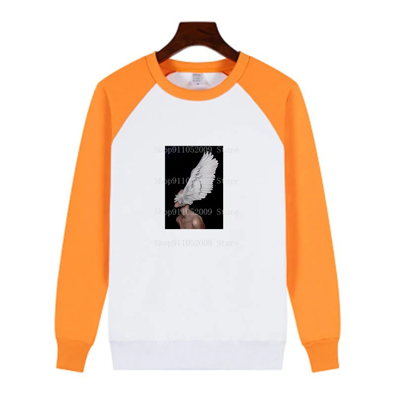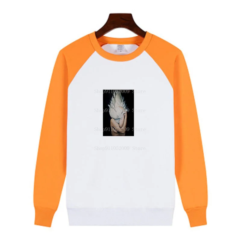 Новый сексуальный цветочный принт с перьями Harajuku женский толстый теплый бархатный пуловер с капюшоном оранжевые рукава Белый свитшот на выбор