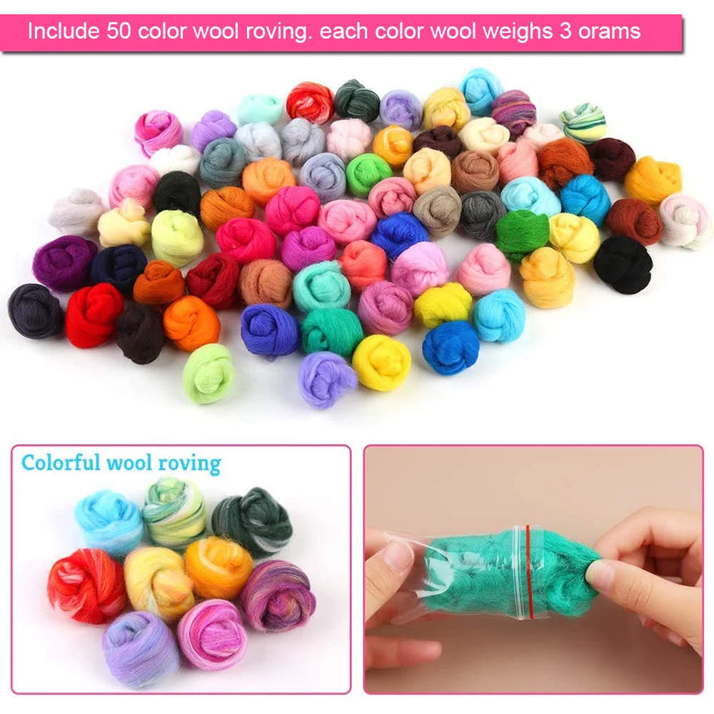 MULTI Выбор разных цветов: Набор для валяния игл с 36/50 цветами Шерсть-ровинг, каждый цвет индивидуально упакован в закрывающийся полиэтиленовый пакет, доступны в различных красивых цветах, чтобы удовлетворить ваши потребности и превратить ваши художественные идеи в радостные предметы.