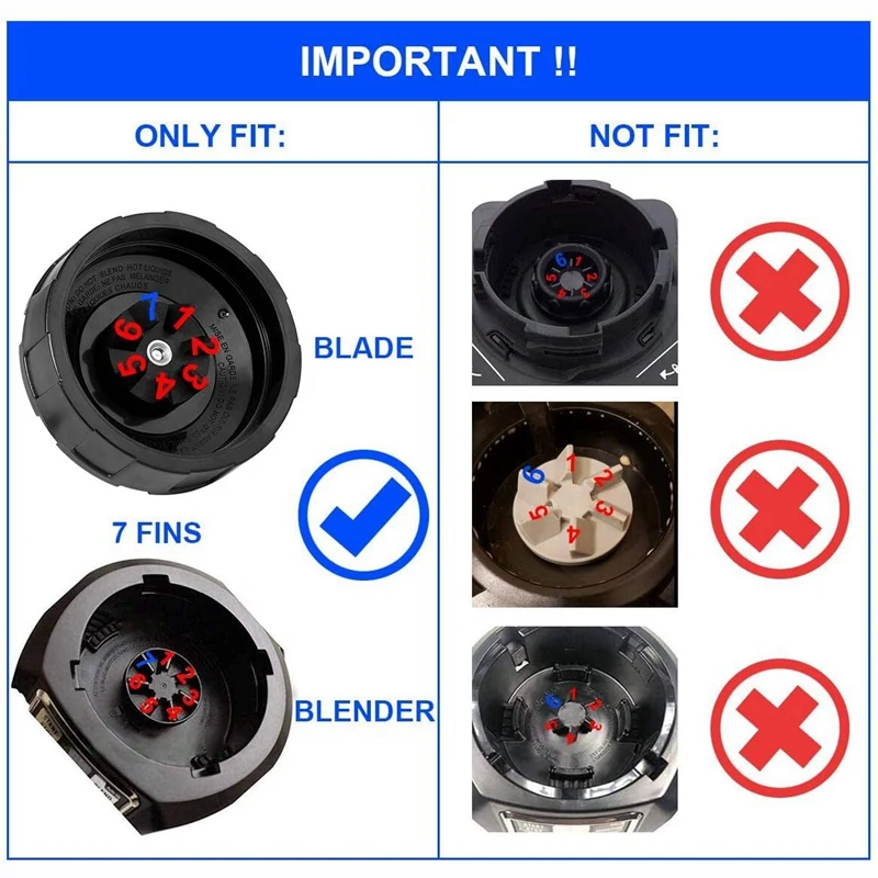 Обновленное лезвие: запасные части для блендера, 7 плавников, нижние лезвия из нержавеющей стали и пищевой полипропилен, высокая твердость, не легко сломать, без зазора. Легко раздавить Большие кусочки фруктов, овощей, суперпродуктов и протеина, встряхнуть в вкусную, гладкую текстуру. Сейф для посудомоечной машины.