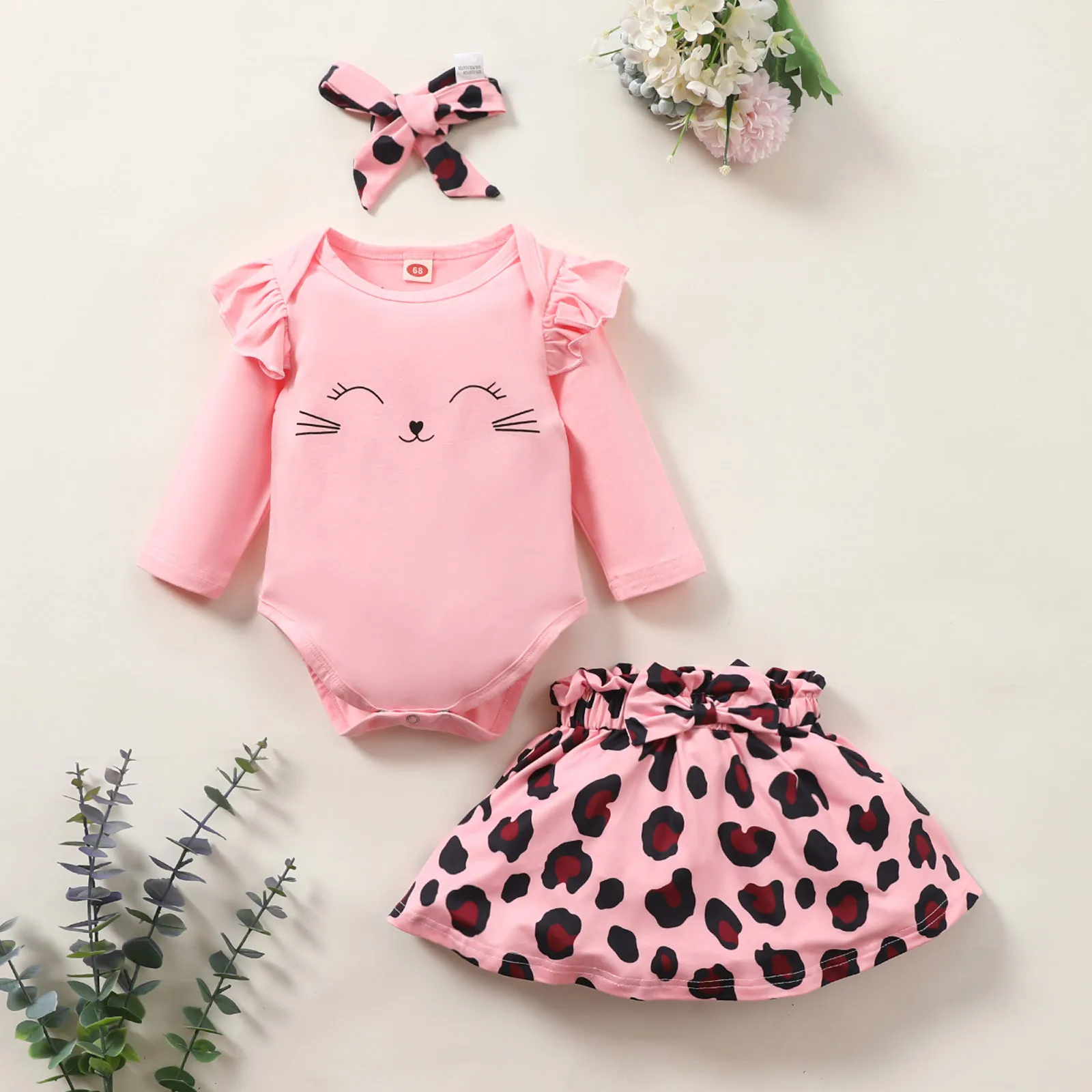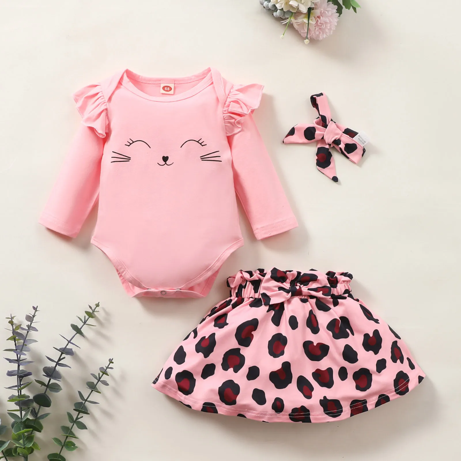 Одежда для маленьких девочек; Детский комбинезон с принтом леопарда для маленьких мальчиков и девочек; Платье с юбкой; Одежда с повязкой на голову; Комбинезон для новорожденных