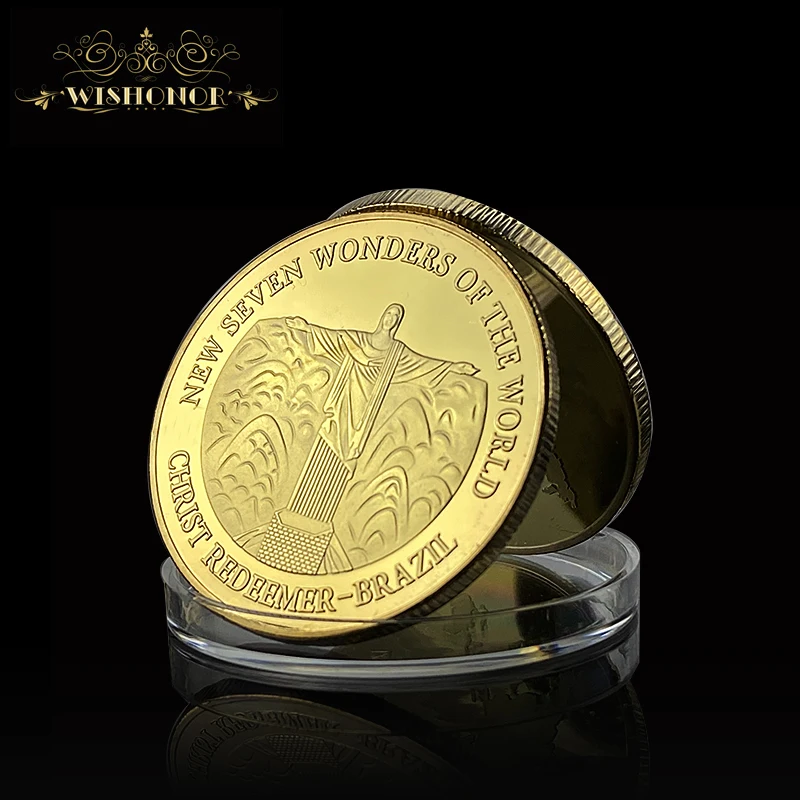 Название: Сувенир позолоченная монета Бразилия Христос Искупитель Новые Семь чудес мира монеты