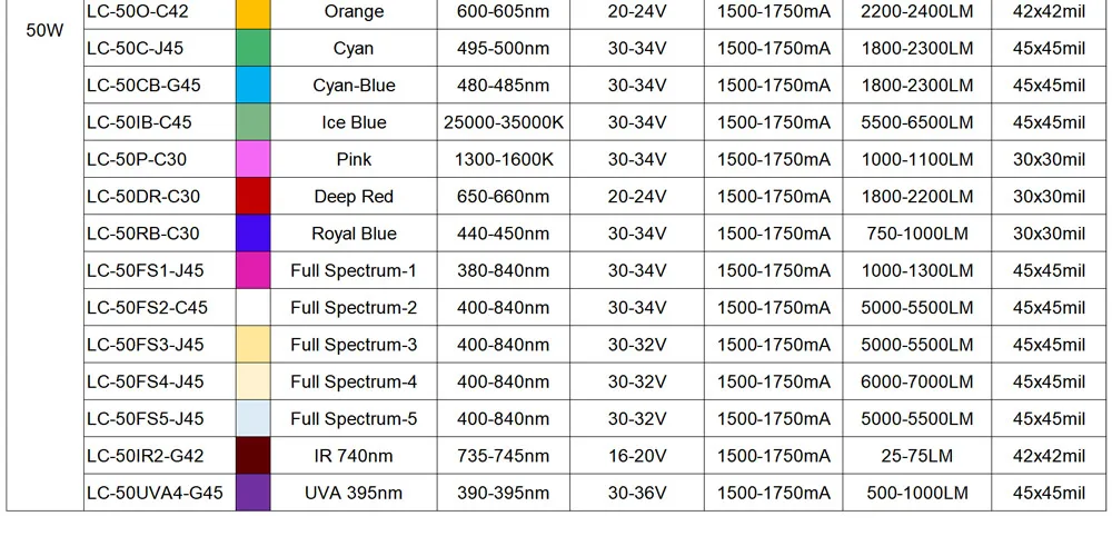 Высокая мощность 50 Вт светодиодный COB чип теплый натуральный холодный белый красный синий зеленый желтый RGB полный спектр для DIY 50 100 Вт Ватт светильник