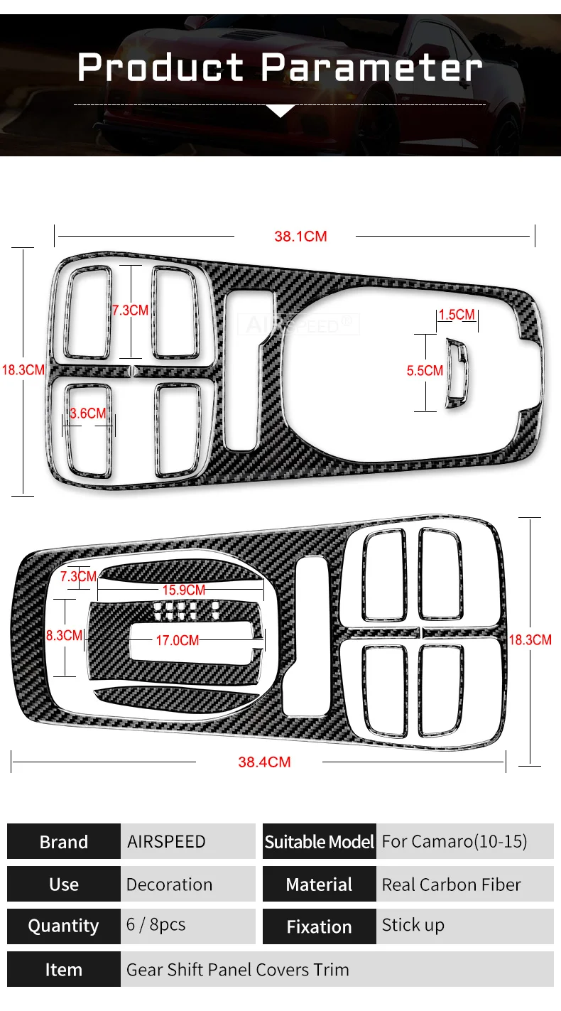 Изделия изготовлены из высококачественного углеродного волокна с красивыми текстурами Изделия изготавливаются в соответствии с оригинальными размерами, которые идеально подходят Состояние на 100% абсолютно новый Посылка включает в себя: 6 шт./партия Материал: углеродное волокно Совместимые модели: для Chevrolet Camaro 2010-2015
