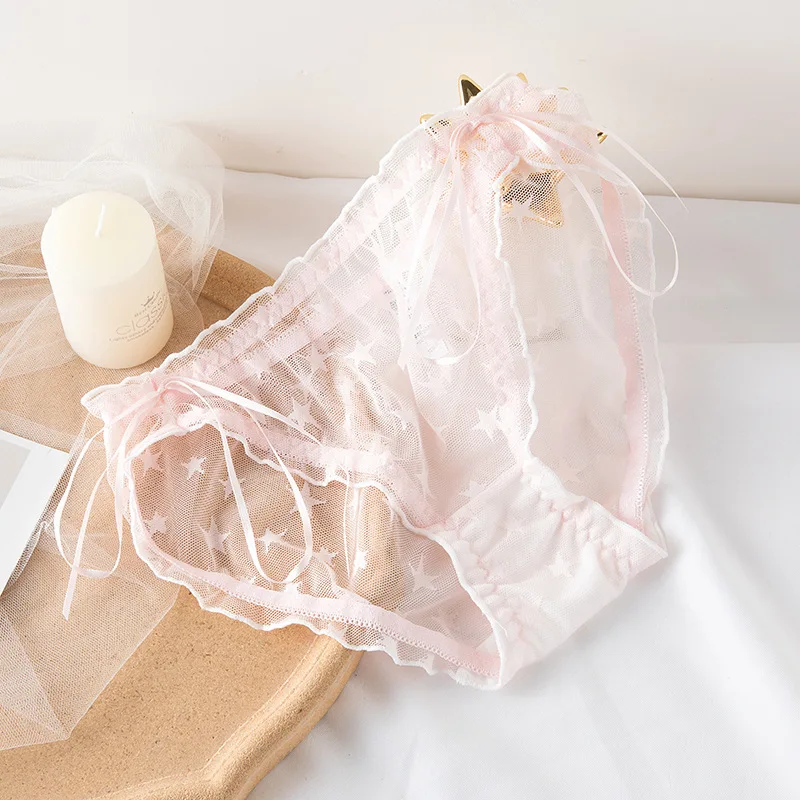 Сексуальные женские трусы с низкой посадкой, одноцветные Трусы со звездами, женское нижнее белье, женские прозрачные кружевные трусики с бантом, женское нижнее белье, стринги