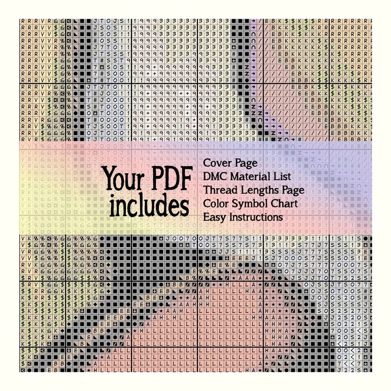 100% хлопковая нить, холст Aida, иглы, бумажная Таблица (Инструкция на английском языке, цветная печать, размер А4/страница)
