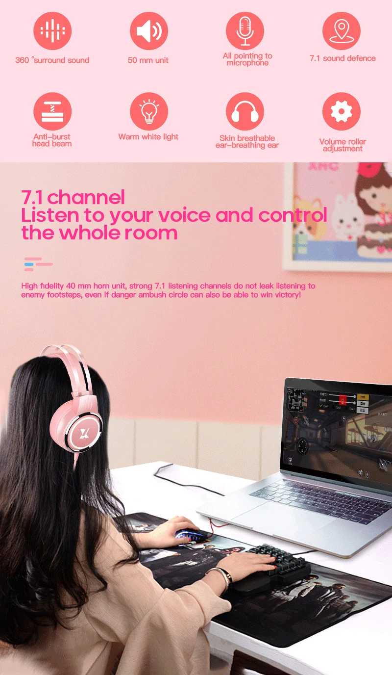 Модель: розовые наушники x8