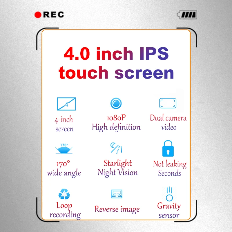 Для A20 серебро 4 дюйма IPS сенсорный экран двойная запись звездный свет ночное видение Высокое разрешение 1080P рекордер вождения