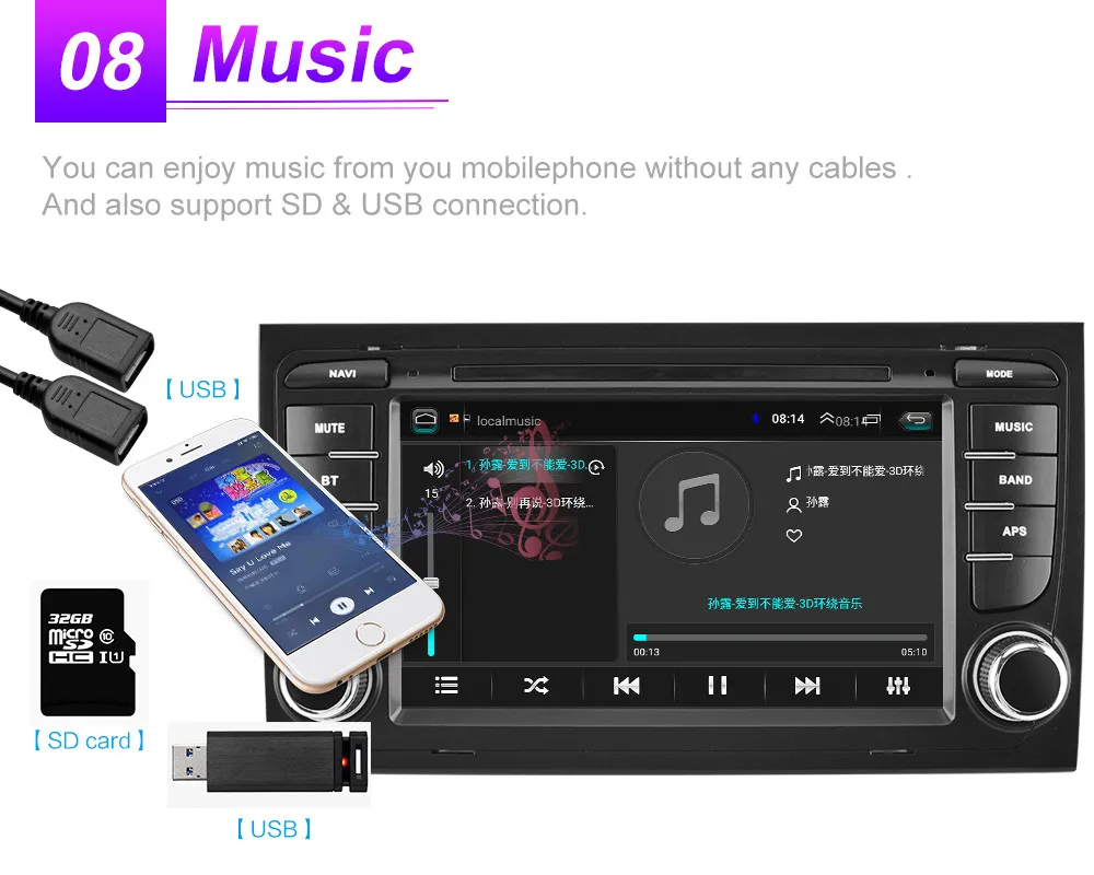 Продукт поддерживает подключение оригинального автомобильного усилителя (вы можете найти службу поддержки клиентов, чтобы найти способ подключения)