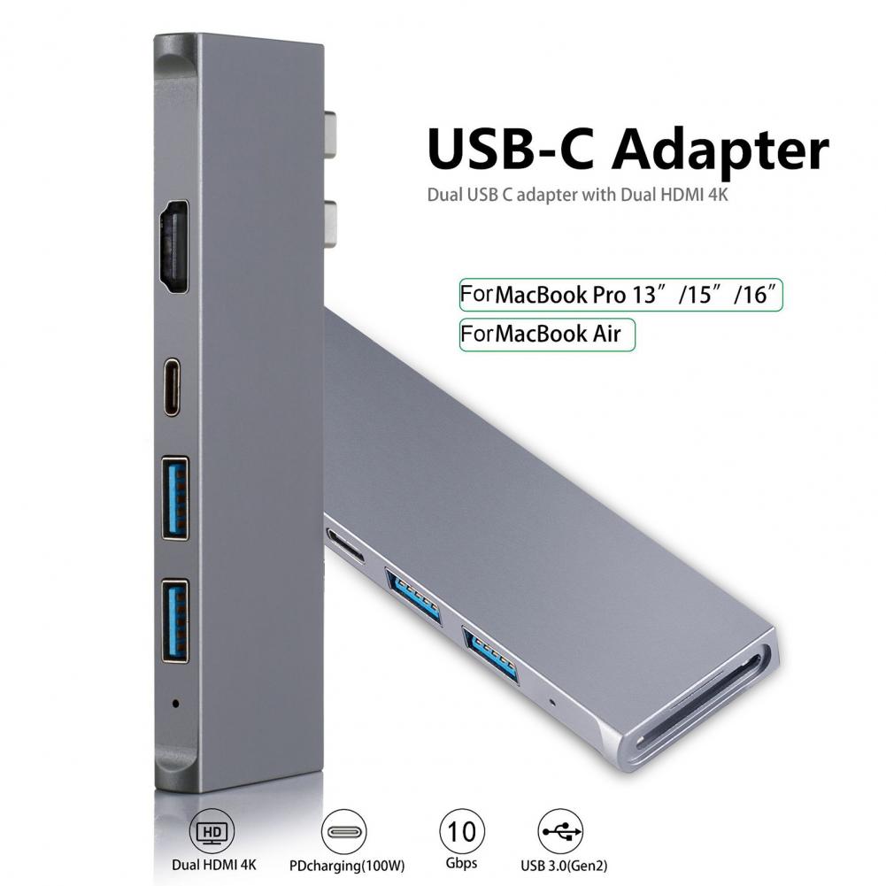 7-в-1 4K Высокое разрешение видео Выход двойной HDMI Порты и разъёмы кард-ридер Тип интерфейса-C концентратор USB док-станция адаптера