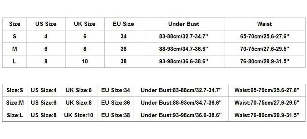 Размер Американский размер Размер Великобритании Европейский размер Под грудью Талия S 4 6 34 83-88 см/32,7-34,7" 65-70 см/25,6-27,6" М 6 8 36 88-93 см/34,7-36,6" 70-75 см/27,6-29,5" L 8 10 38 93-98 см/36,6-38,6" 76-80 см/29,9-31,5"