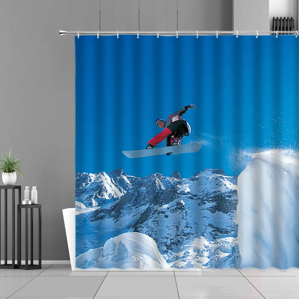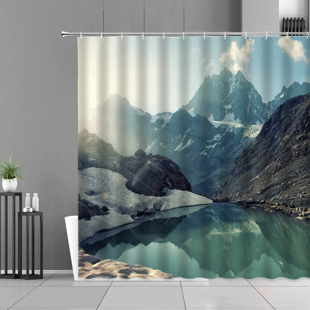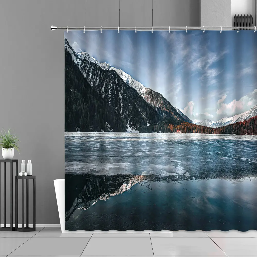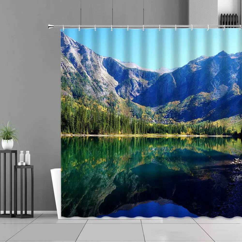 Landscape Decor Shower Curtains Swiss Mountains Goat Green Trees Forest Lake Natural Scenery Bathroom Curtain Home Decor Cloth
