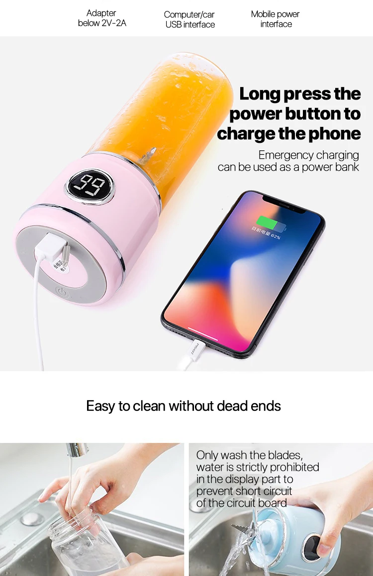 420 мл портативные блендеры 304 нержавеющая сталь шестилистное лезвие 16000 оборотов в минуту USB электрические блендеры кухонные приборы