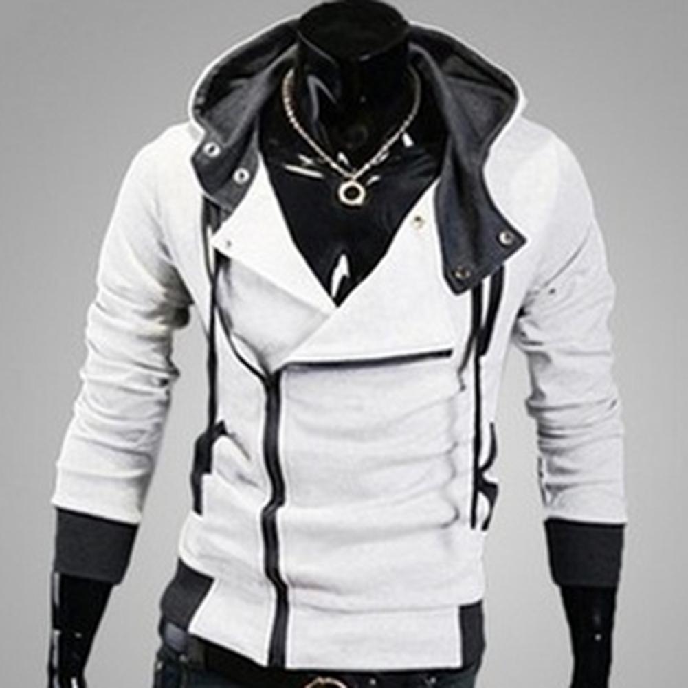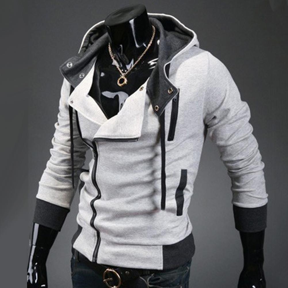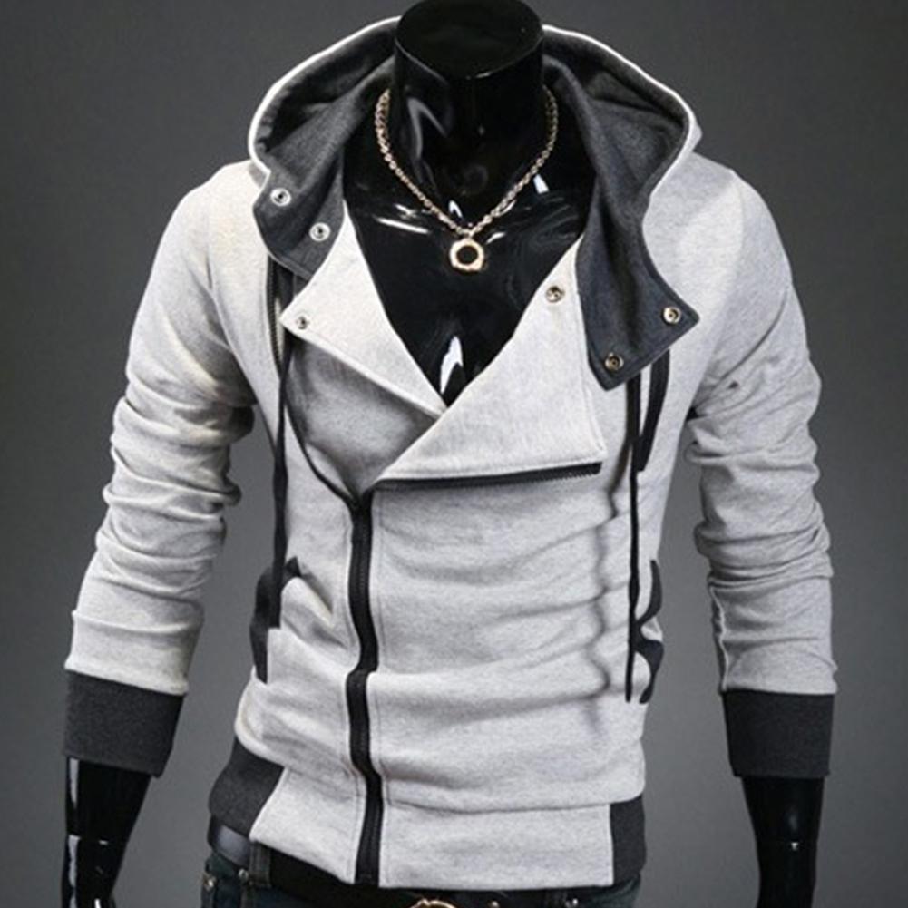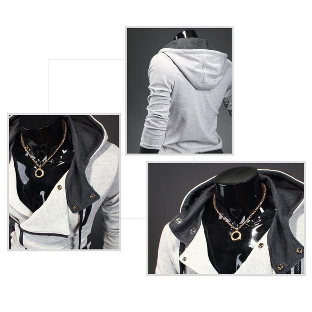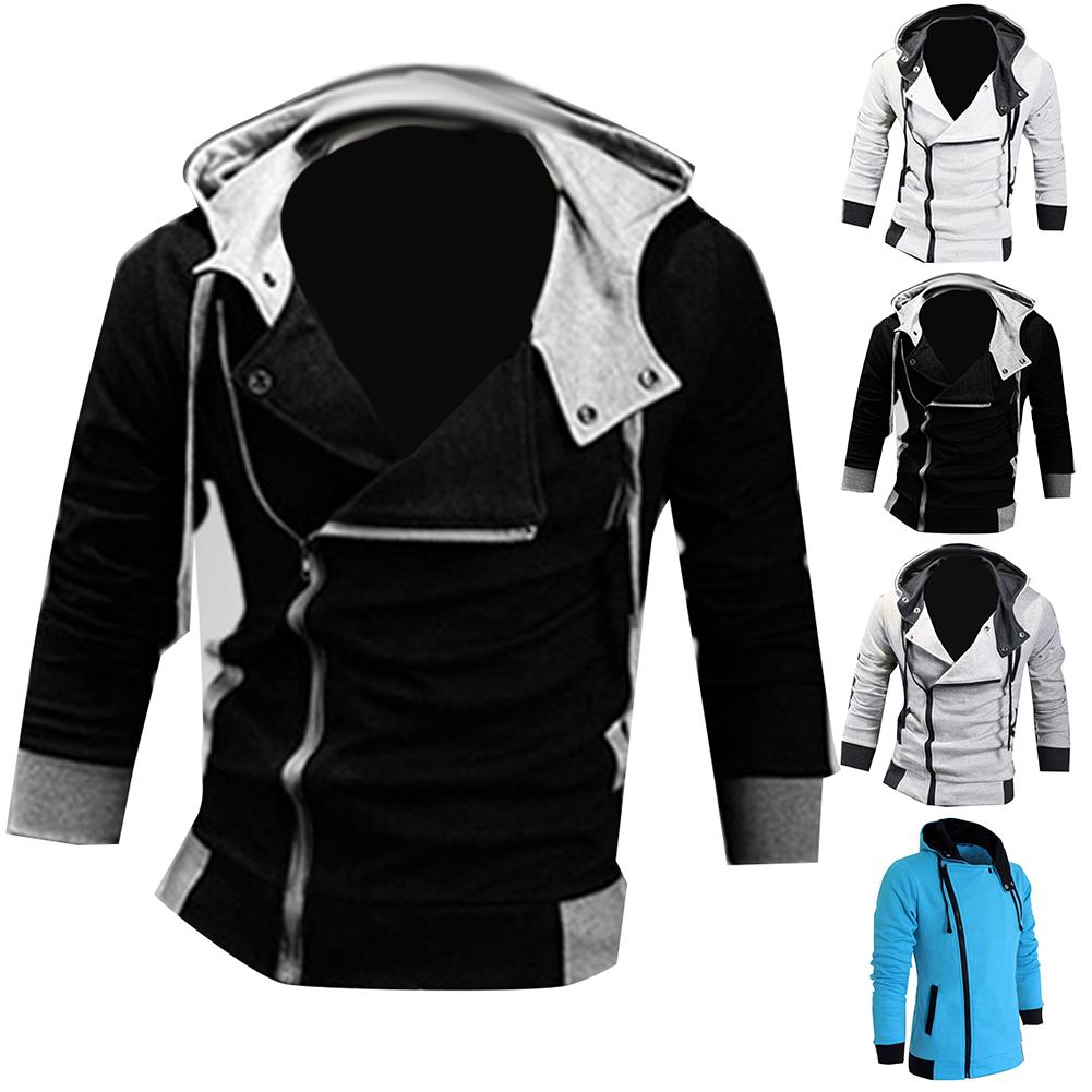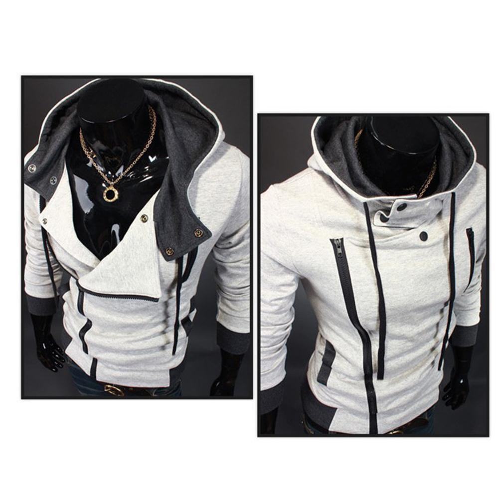 Men Side Zipper Pocket Drawstring Long Sleeve Hooded Sweatshirt Jacket Coat