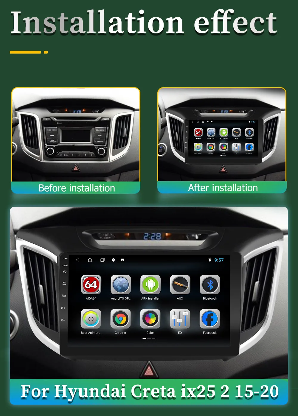 ОС: чистая Операционная система Android RAM + ROM: 1G + 16G 2G + 16G 2G + 32G 4G + 32G 4G + 64G 6G + 128G Поскольку система занимает внутреннюю память, операционная система занимает около 4-6 ГБ памяти. Бесплатная карта установки Процессор: четырехъядерный Звуковой процессор: TDA7388 4X45 Вт Поддержка изменения логотипа, пароля заводского набора: 8888, изменение логотипа Разъем питания: подключи и работай Встроенный GPS -Поддержка 2D HD и 3D карт Разрешение: емкостный экран 2.5D HD 1024*600 пикселей --- Поддержка внешнего мобильного U-диска и жесткого диска формата FAT32 (без ограничения по емкости) --- Интернет-развлечения, встроенный модуль WiFi. --- Поддержка видеоигр HD 1080p, поддержка зеркального соединения и Airplay. --- Радио: FM / AM-радио с 30 предопределенными станциями Языки: испанский, немецкий, упрощенный китайский, традиционный китайский, французский, английский Японский Корейский Тайский Турецкий греческий корейский польский датский голландский Чешский румынский малайский шведский Словацкий иврит вьетнамский финский упрощенный китайский традиционный китайский Функция двойной зоны (пользователь может слушать музыку или радио в режиме GPS-навигации) --- Встроенная Bluetooth-гарнитура и телефонная книга, поддержка A2DP, воспроизведение музыки напрямую по телефону. (Необходимо согласиться на авторизацию телефона и синхронизировать контактную информацию в настройках телефона) Совместимость с управлением на руле Электронная и механическая Противоударная система --- Высокомощный стерео аудиовыход, поддерживает 4 динамика ---- Вход камеры заднего вида Обратите внимание: в этой статье нет функции DVD / CD, но она поддерживает жесткий диск, мобильный USB / U диск.
