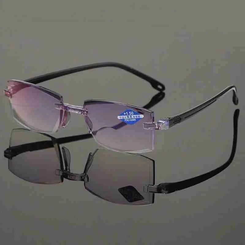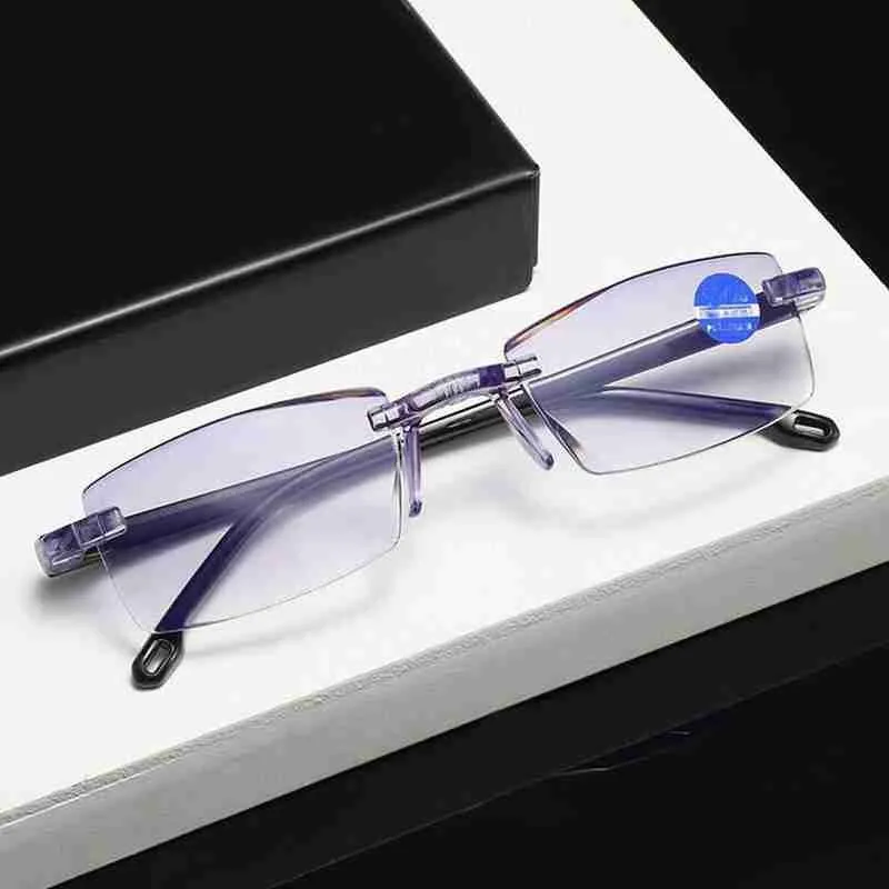 Новые анти-синие очки для чтения для мужчин и женщин, мужские бифокальные очки без оправы, дальний близкий светильник, очки для увеличения дальнозоркости, очки с плоскими линзами