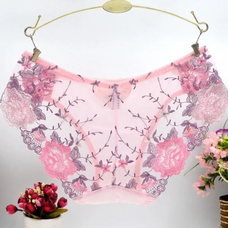 6 цветов, женское нижнее белье с вышивкой в китайском стиле, женские Невидимые трусики из спандекса, сексуальные кружевные трусики с цветочным рисунком, бесшовные трусики